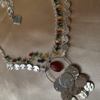 The swirling Darwish sterling silver necklace with pearls and onyx stones