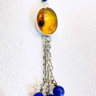 Silver 925 necklace, with amber stone and lapis lazoli beads
