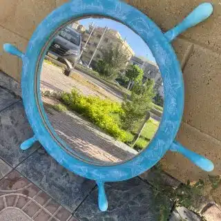Wooden Summer Mirror wheel design and coastal patterns