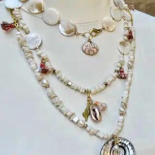 Summertime, mother of pearl, seashells necklaces, sold separately.