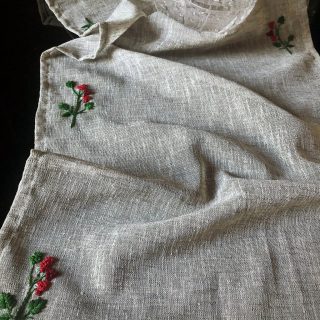 Table runner embroidered on both sides .