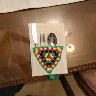 Heavy Duty Canvas Table Runner & Cuttlery Holder Sets with Crochet Appliques