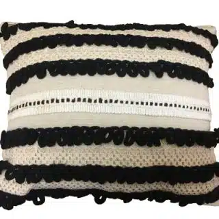 Add a touch of bohemian elegance to your space with this handcrafted cushion featuring intricate black and off-white textured details. Designed with high-quality fabric and unique looped embroidery, this cushion blends modern style with artisanal charm. Perfect for sofas, beds, or accent chairs.
