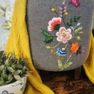 This vibrant round foot stool, adorned with colorful flowers and leaves, is the perfect addition to any room. With its applique embroidered design, the Blooming Ottoman brings a touch of nature and elegance to your living space.
