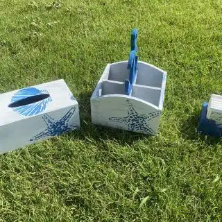 set of wooden basket with tissue box
