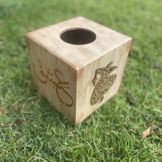 Wooden Set of tissue box and coasters in dervish design and arabic calligraphy