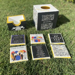 Wooden set of tissue box and coasters F.R.I.E.N.D.S Them in black & white colors