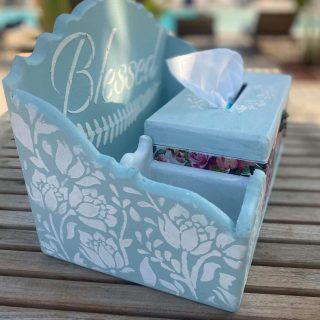Wooden Tissue Box and Coasters vintage fleuri design