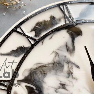 Wooden wall clock with shiny luxurious resin surface. Bring life to your room with this unique piece of art.