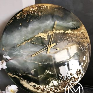 Set of resin paintings and wall clock
