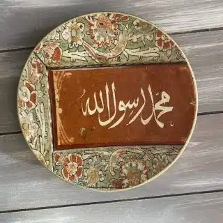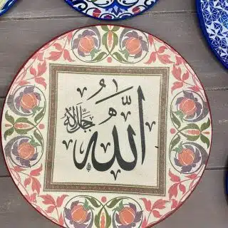 Decoupaged wall decorative plates in Islamic design with names of Allah