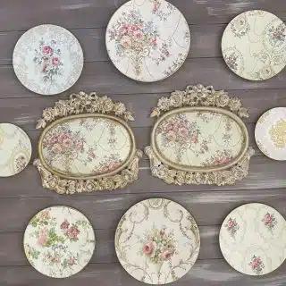 Decoupaged wall decorative plates in pastel chinoiseries design
