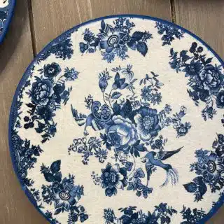 Decoupaged wall plates collection in vintage bleu blanc theme