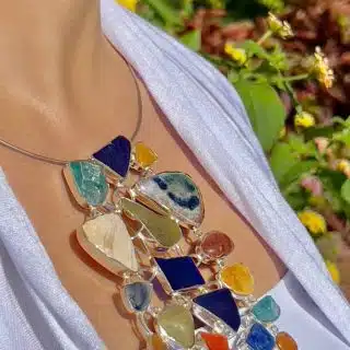 Handmade Sterling Silver sea glass, Sea Pottery, Fossilized sea shell, sear and desert stones Pendant.