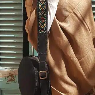 الوصف: إسورة خرز تشيكي شغل إبرة بموتيفات هندسية مستوحاة من التراث السيناوي لمنطقة نويبع.