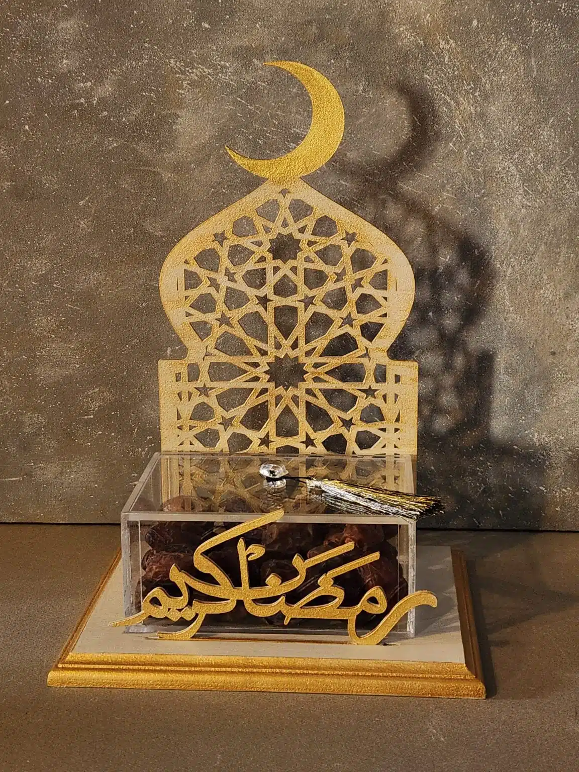 Wooden base 25x18cm, acrylic box 18x12cm. Laser cut Ramadan Kareem calligraphy
