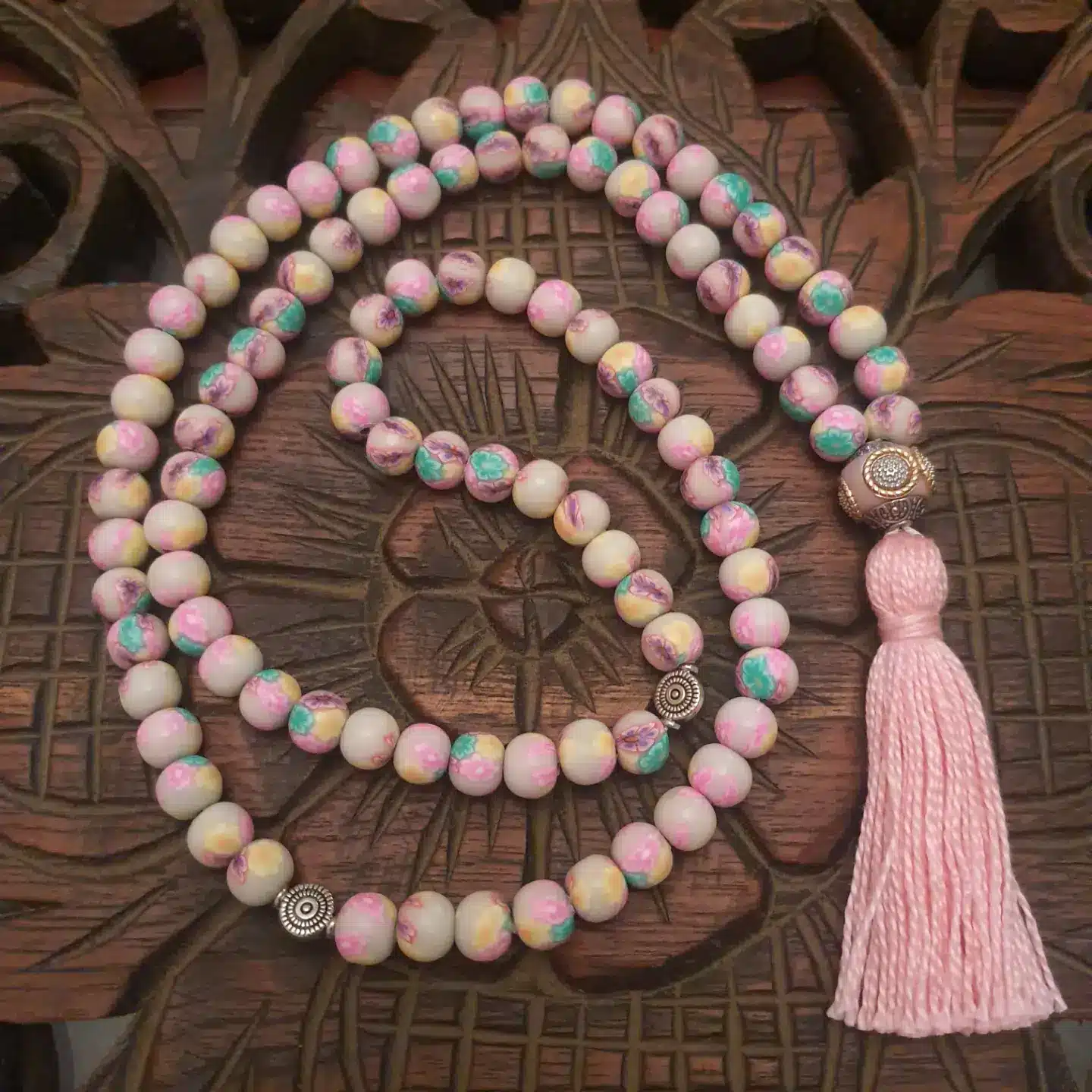 سبحه ٩٩ من الطمي الهندي و الخرز مقاس ٨ مل مطعمه بخرزه اندونيسي
