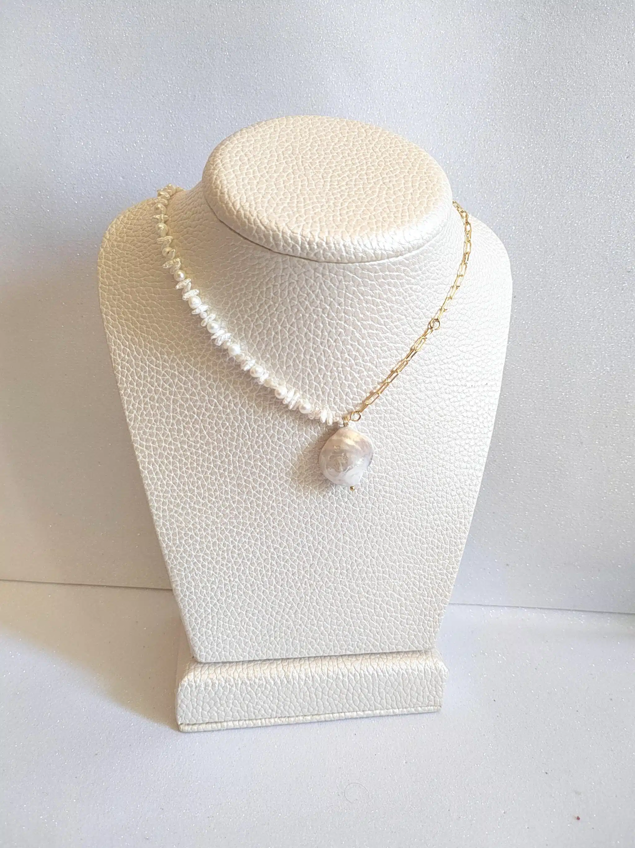 سلسلة من اللولي الابيض و سلسلة. طلاء. دهب