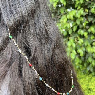 خرز ملون تفسيرة مع احجار نصف كريمة