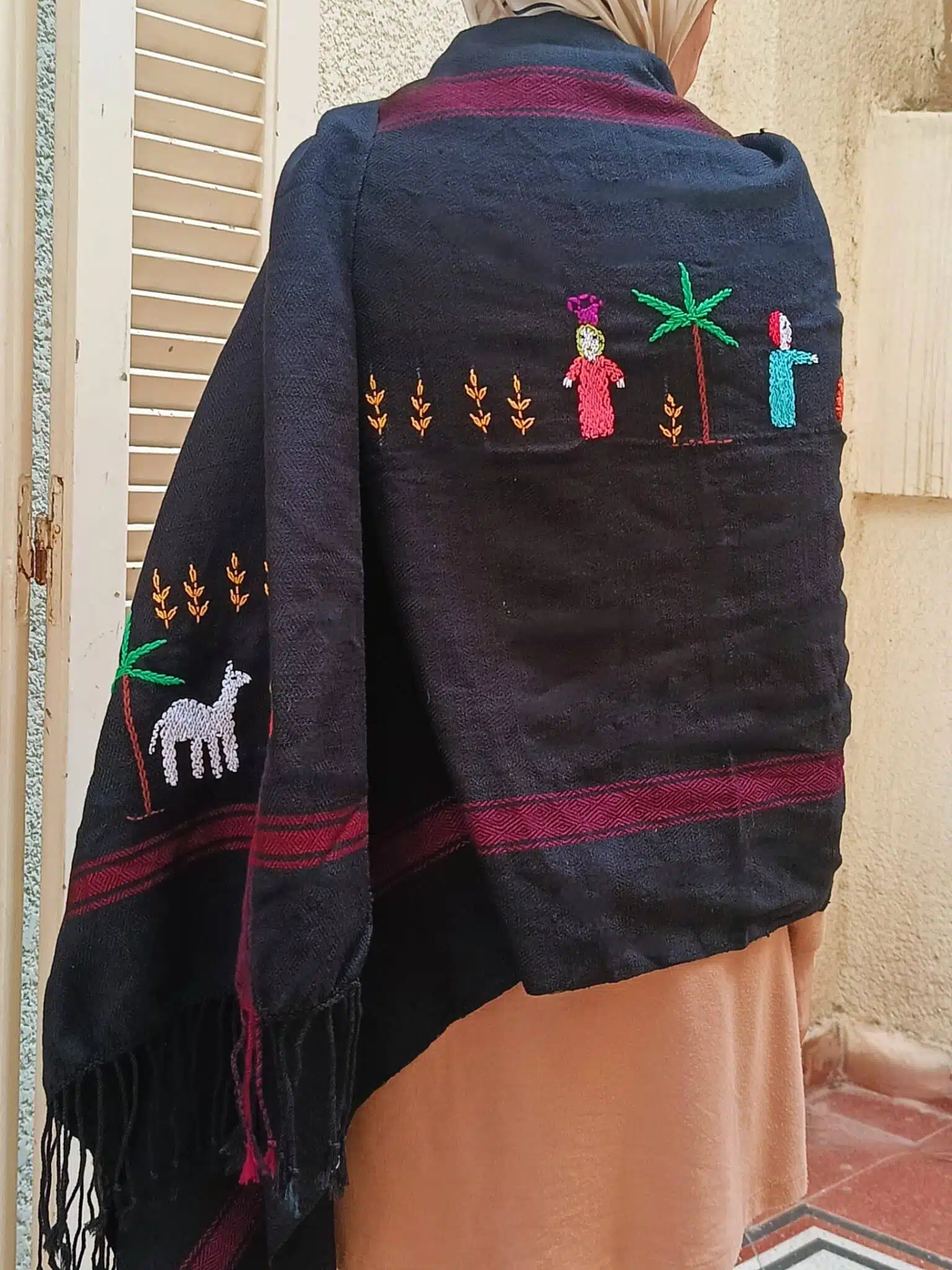 الوصف:شال اسود القسيس قطن تطريز ريفي .
