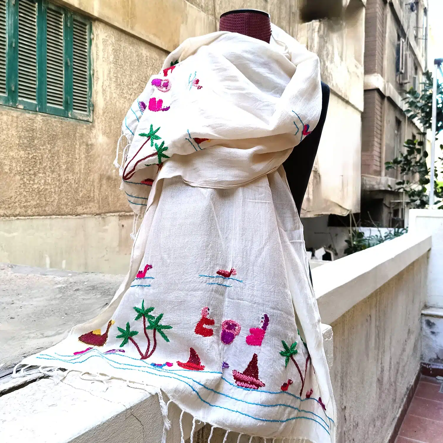 شال ريفى قطن تطريز يدوى بالخيط القطن .