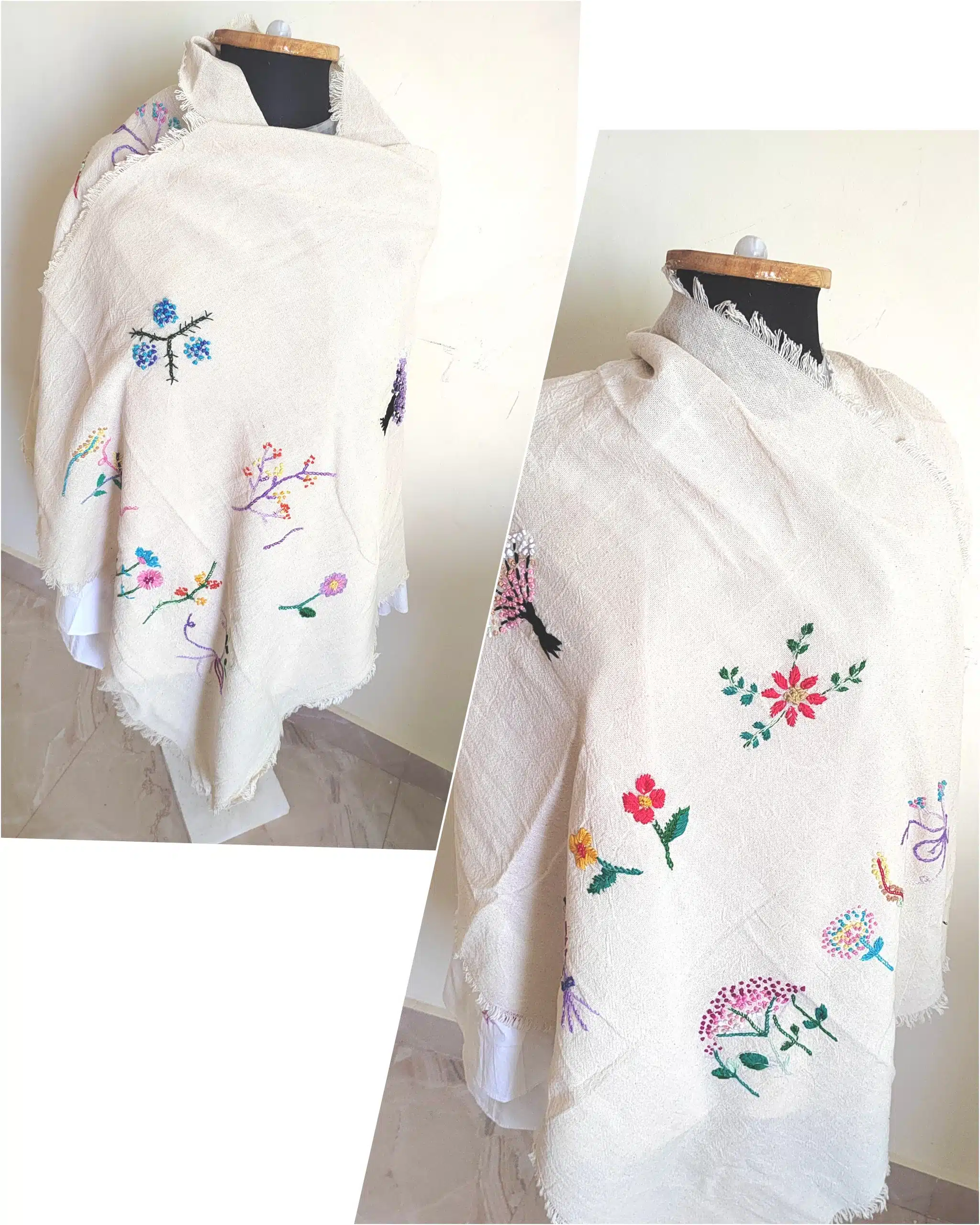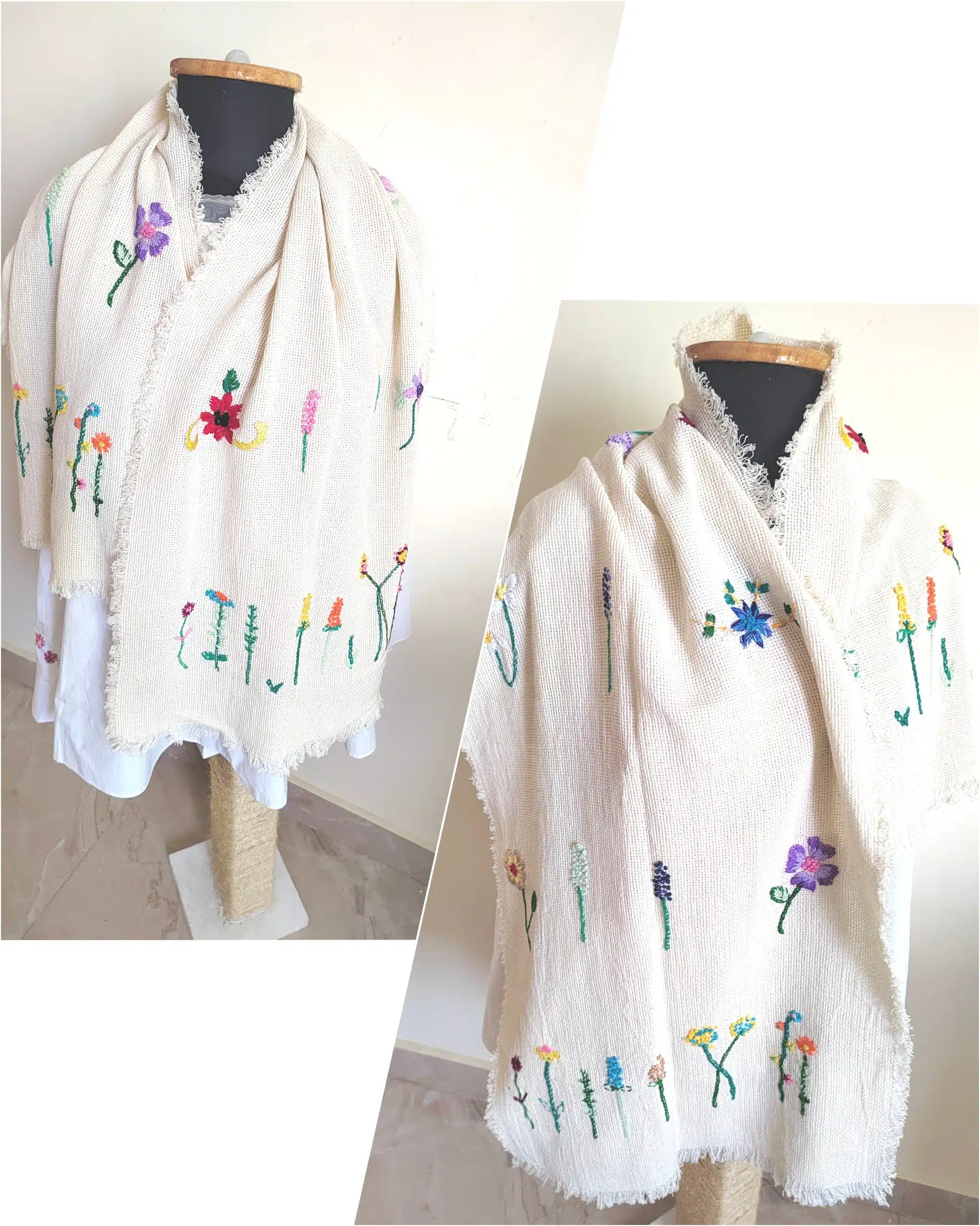 شال من الكتان المعالج المطر.ز يدويا طول140 وعرض45