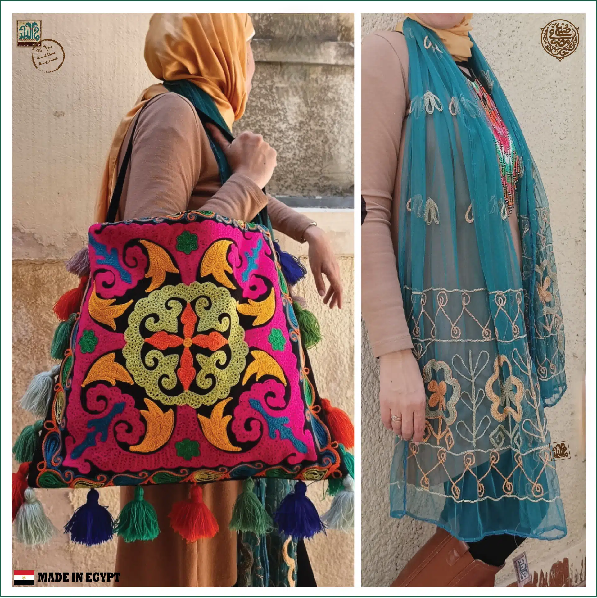 اللون اسود وتطريز شنيط بالوان متنوعه