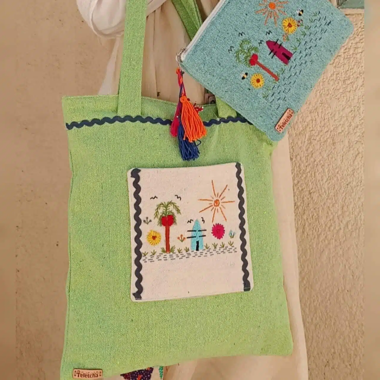 الوصف : شنطة بقماش قطن دك تطريز ريفي مبطنة .