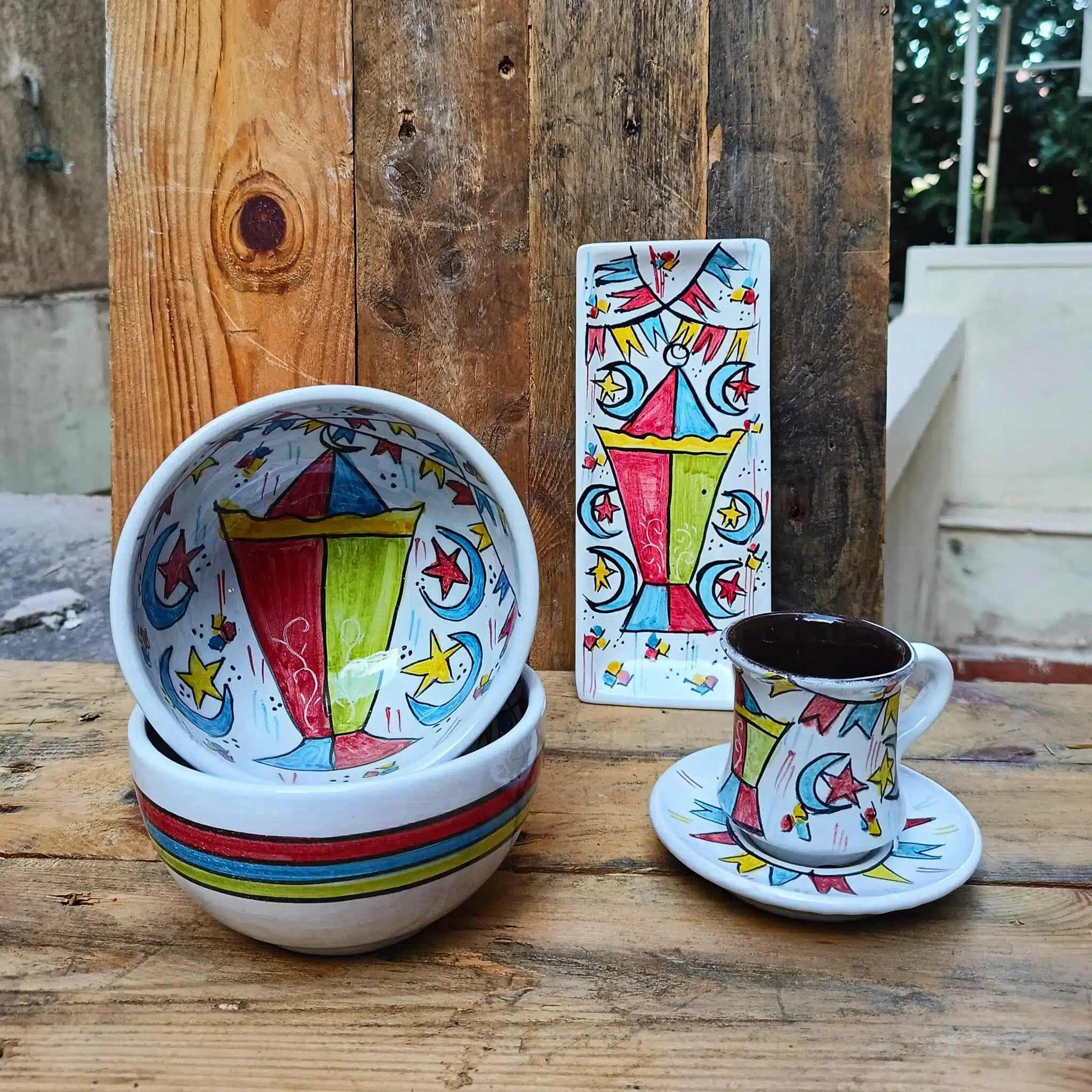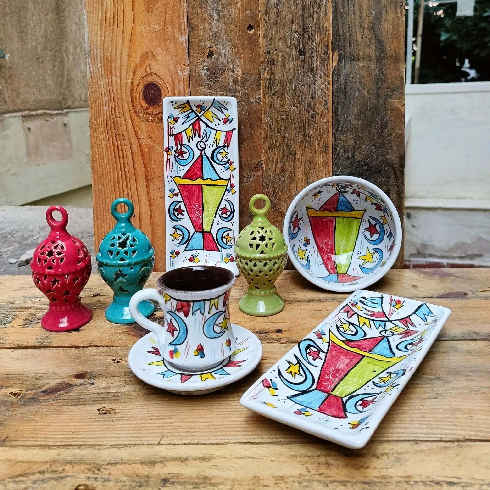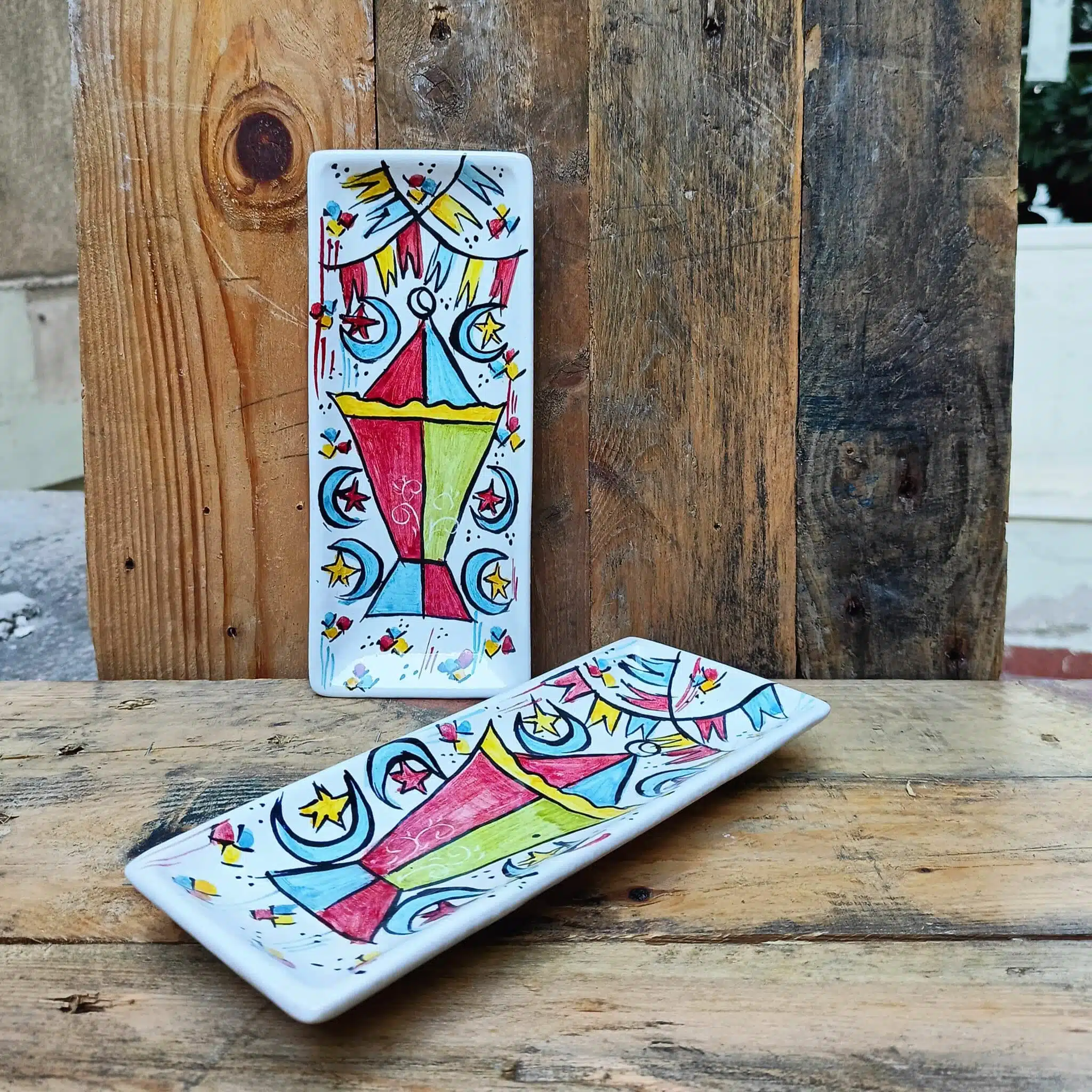 طبق مستطيل ملون ومزخرف بزخارف رمضانيه ملونه