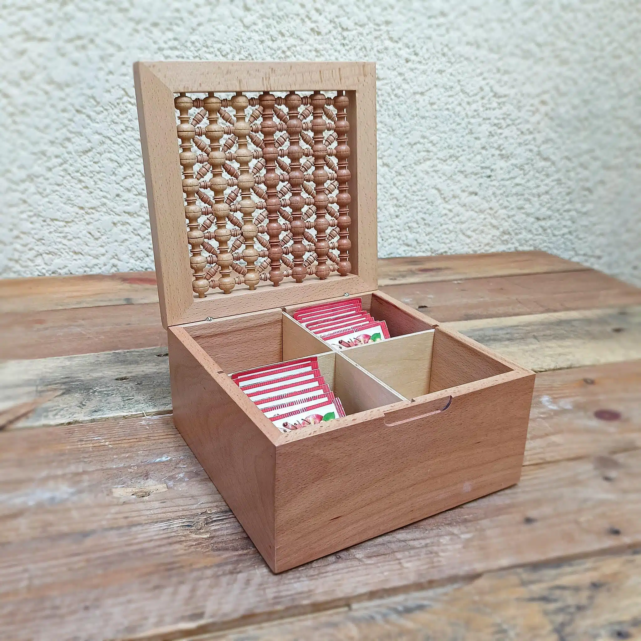 الوصف: علبة شاي خشب زان شغل تفريغ خرط المشربية .