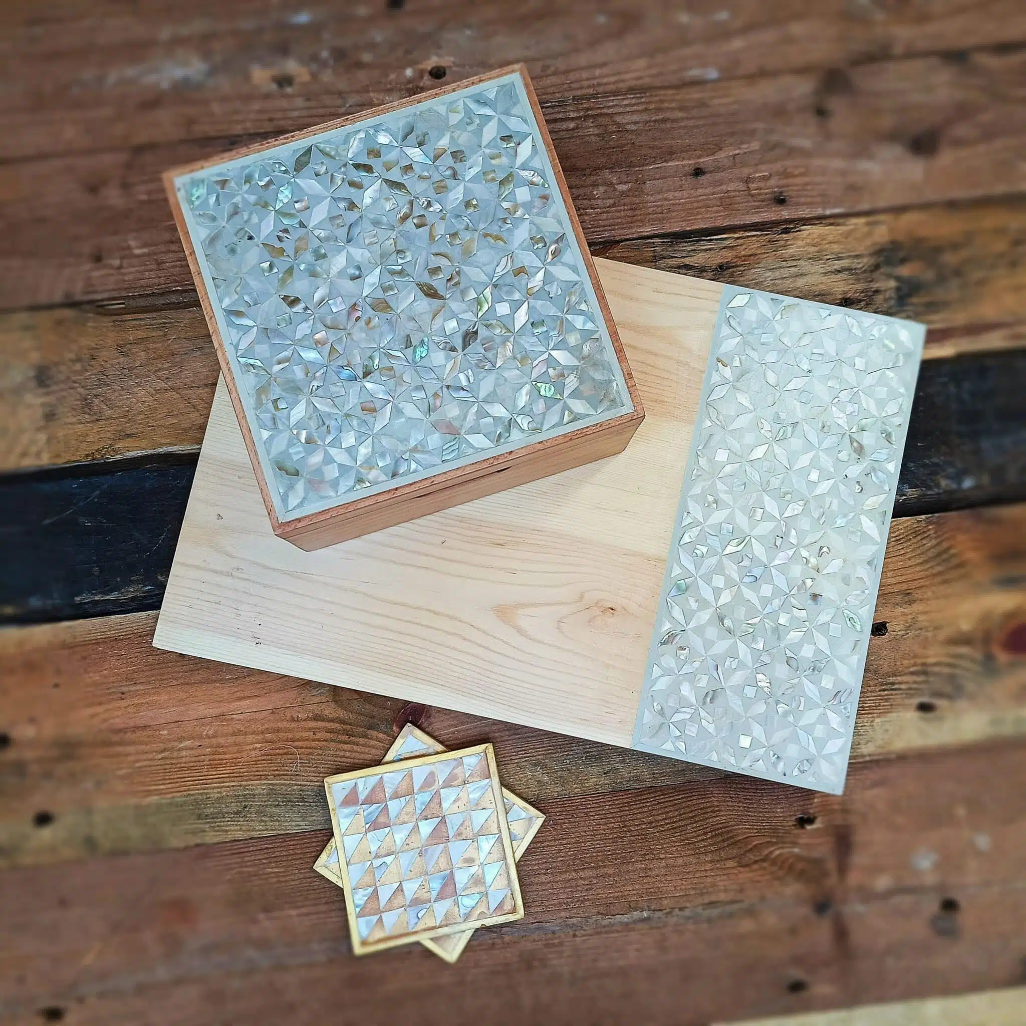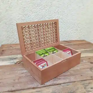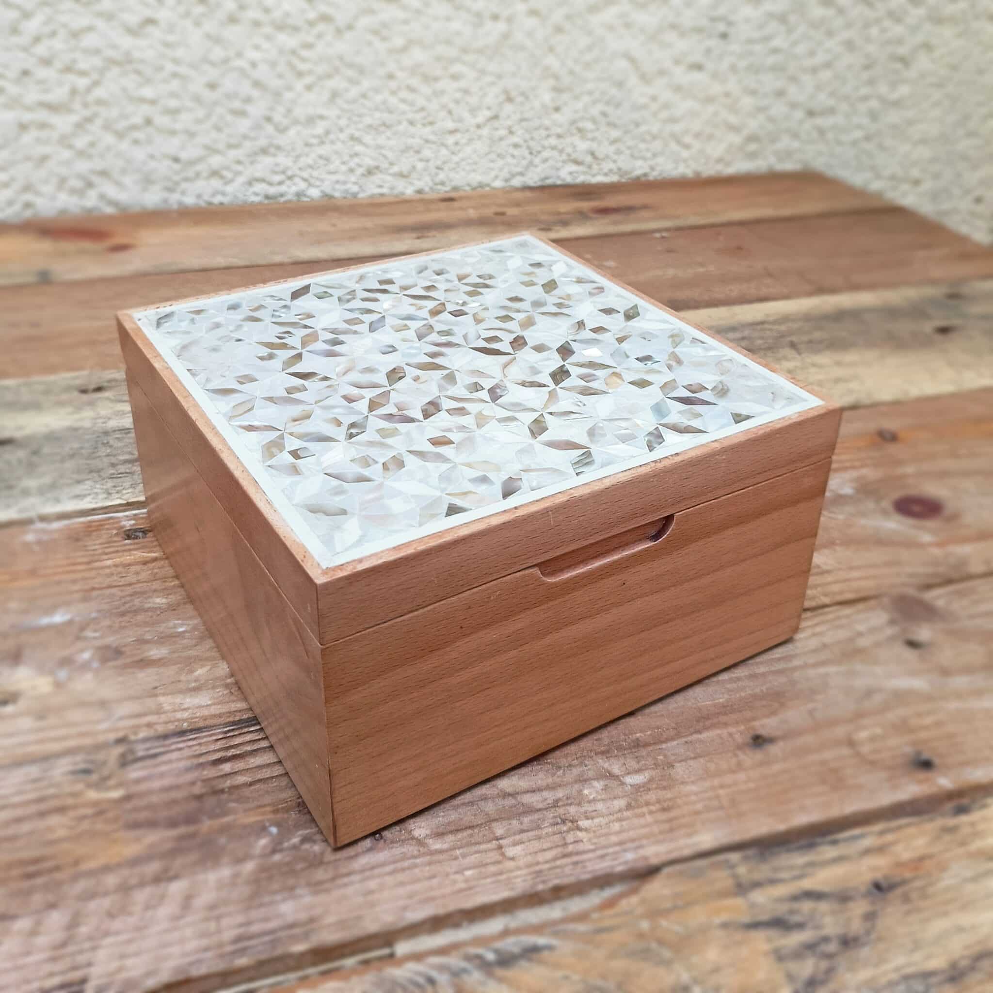 علبة شاي خشب زان وصدف طبيعي .