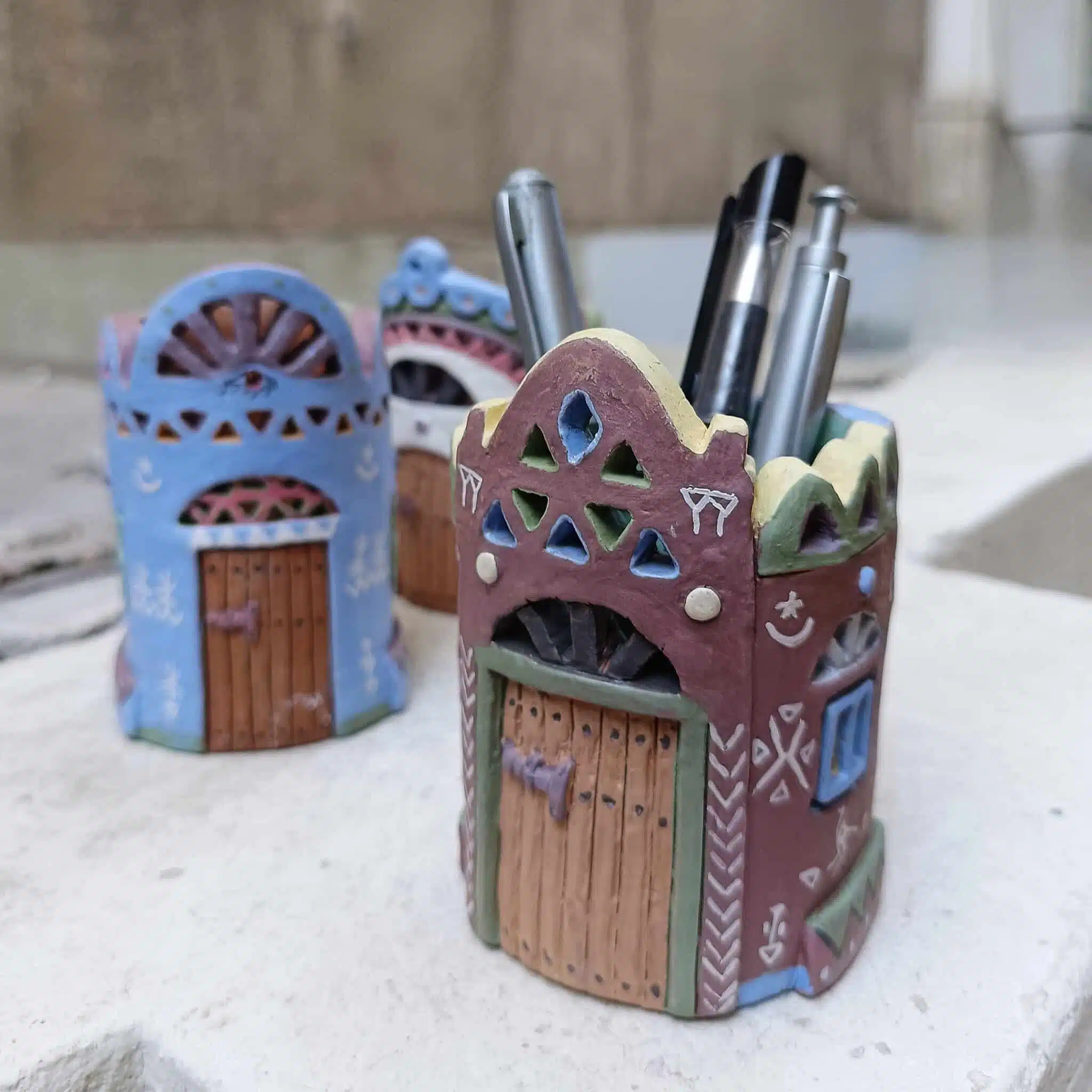 التصميم مستوحى من بيوت النوبة القديمة قبل التهجير وبها تصاميم كالزخارف والالوان وشكل الفتحات.