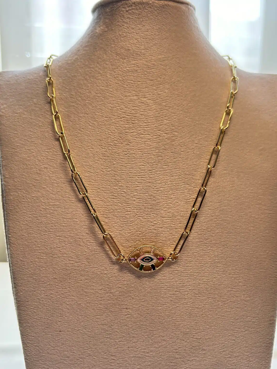 18k gold plated brass boho necklace with Camel eye