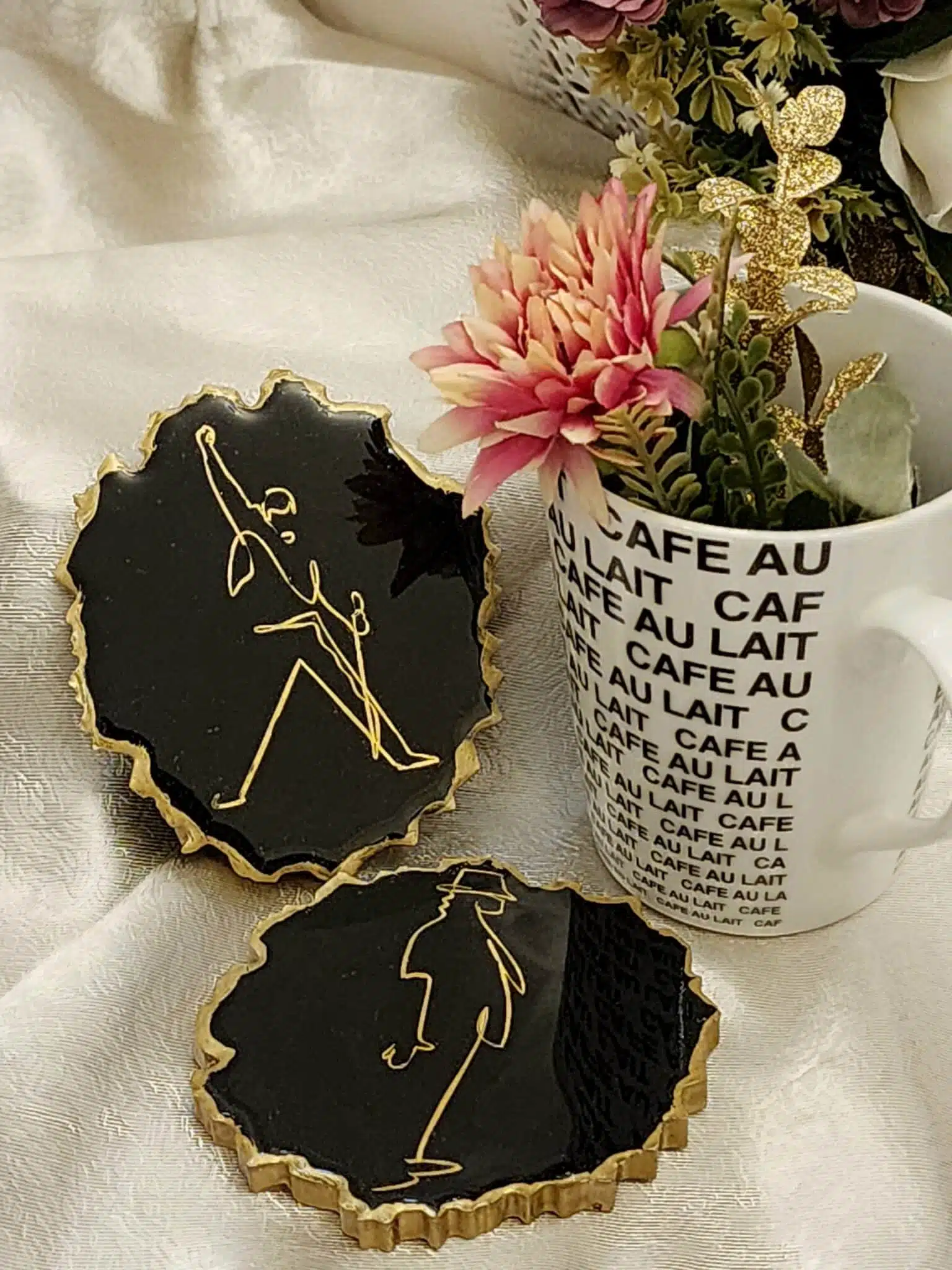 2 set resin coaster with veneel rockstars 💫 for Rock lovers