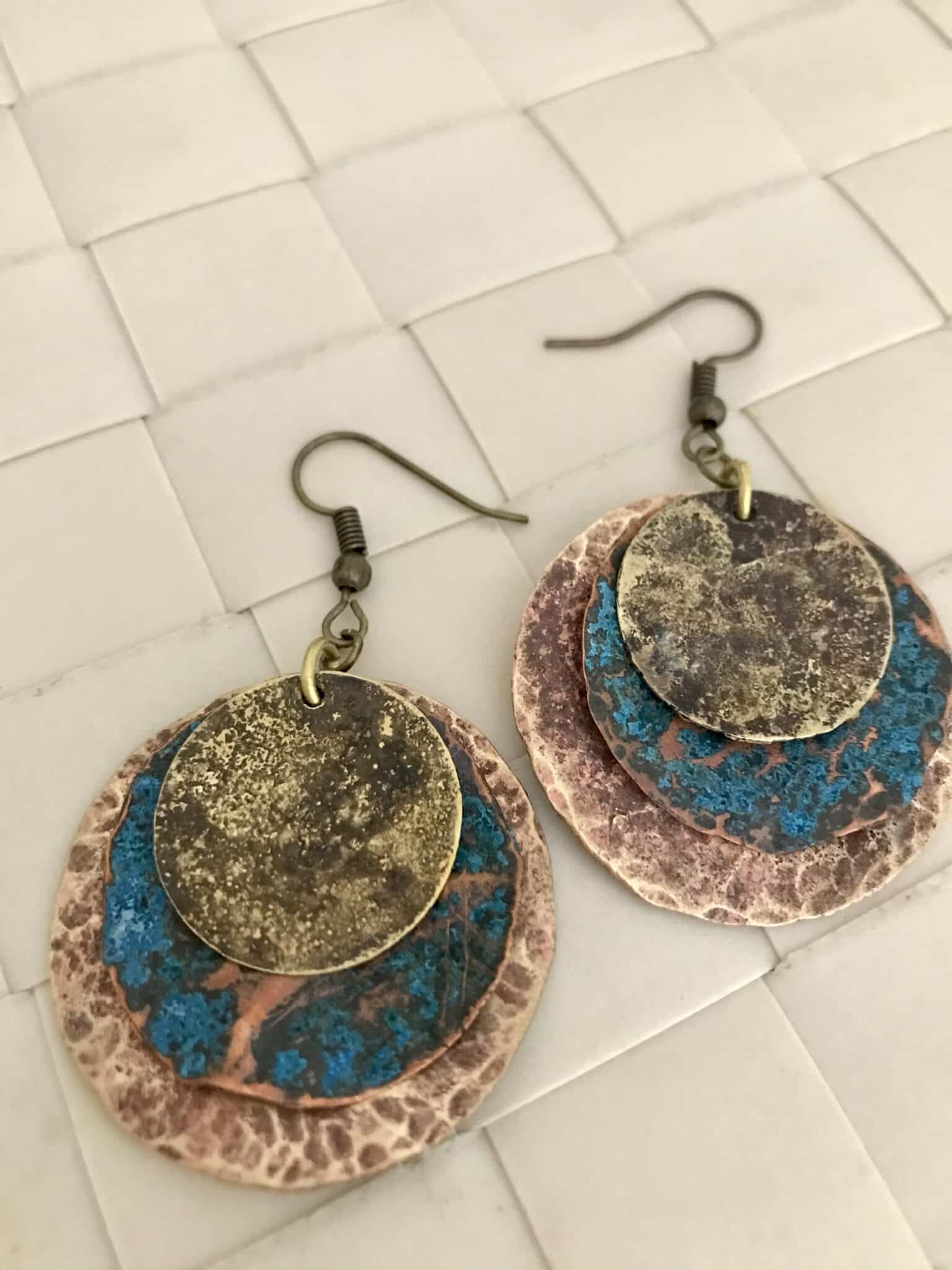 Brass,copper and patina earrings