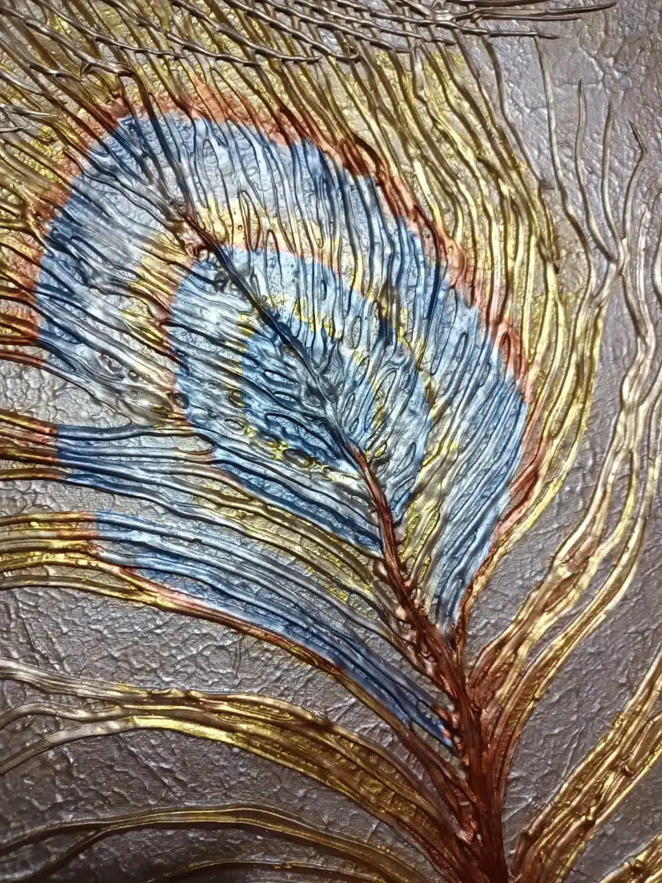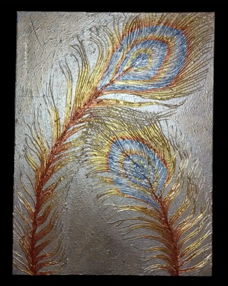 3D metallic peacock feather