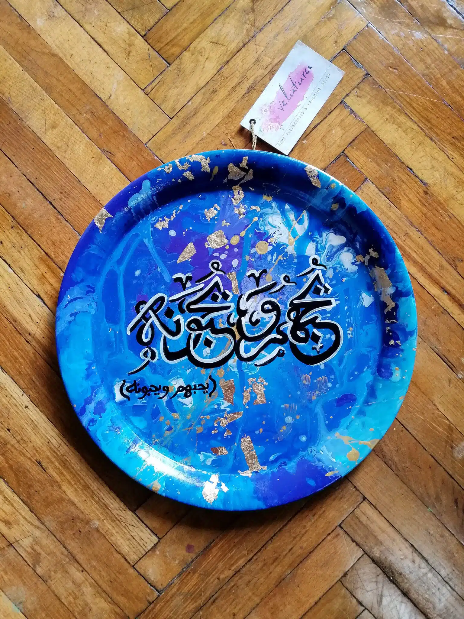 صواني الومنيوم مرسوم عليها بالالوان الاكريليك مقاس / 30سم محفوظة و جاهزة للتعليق على الحائط