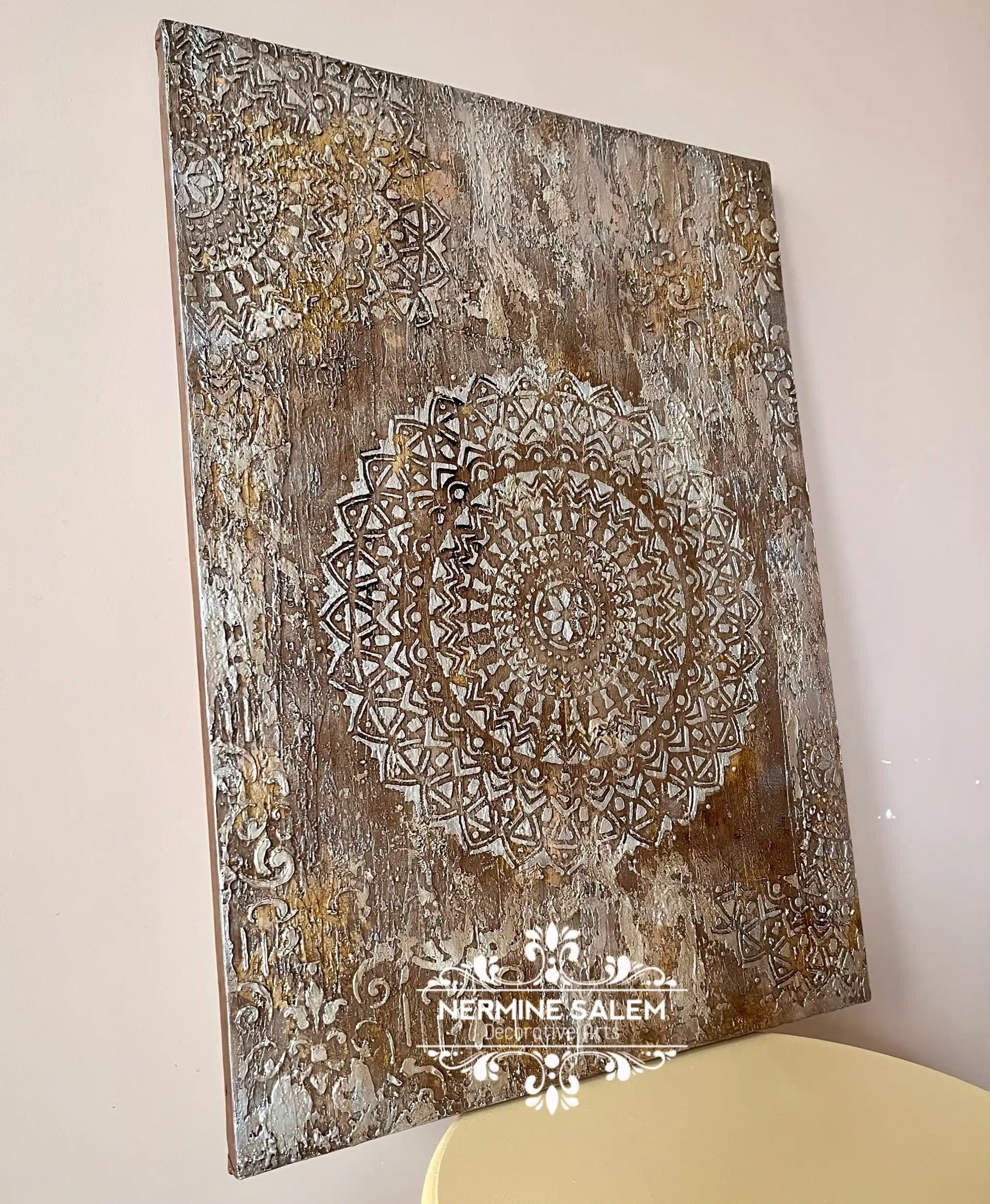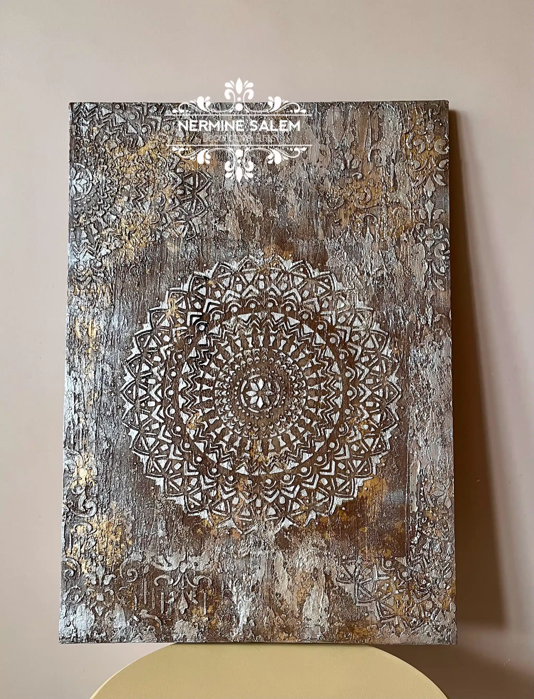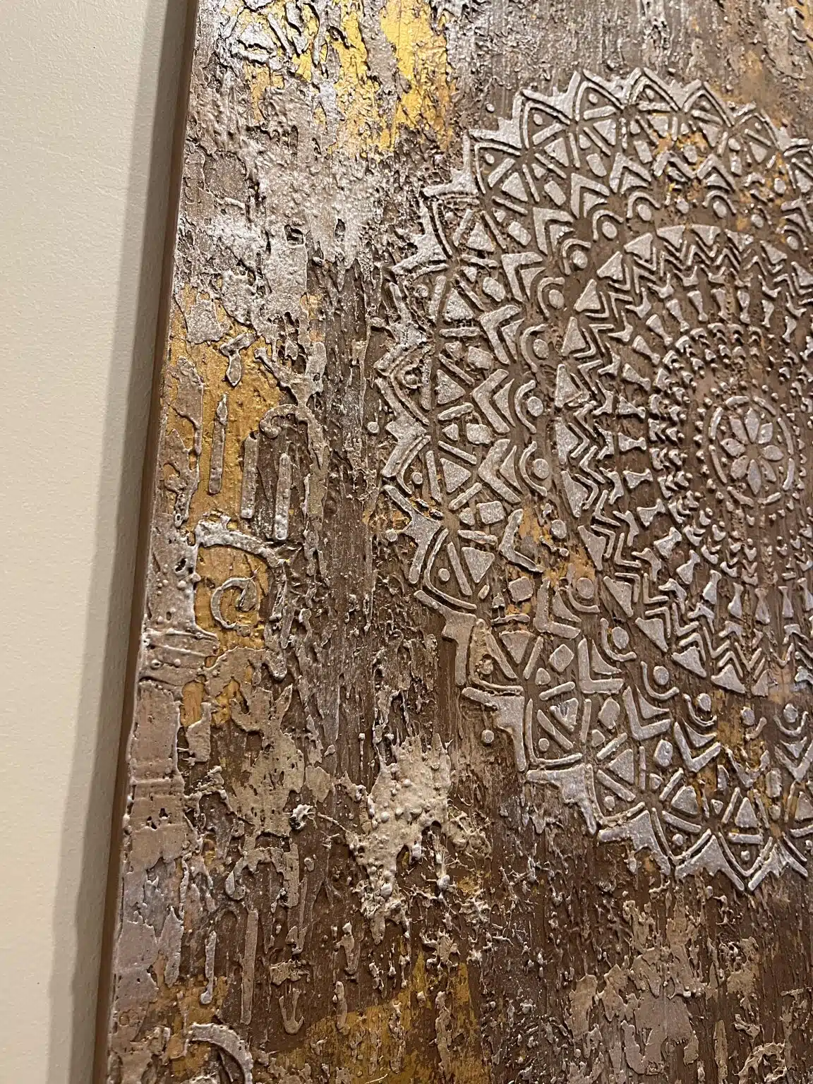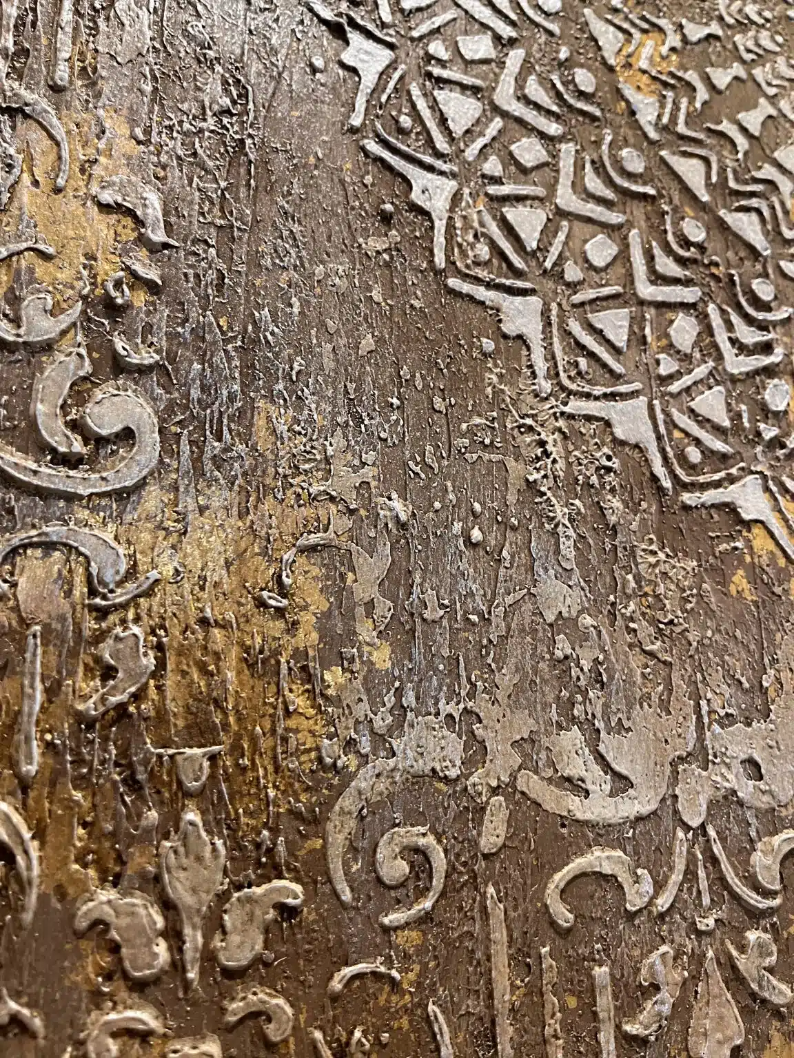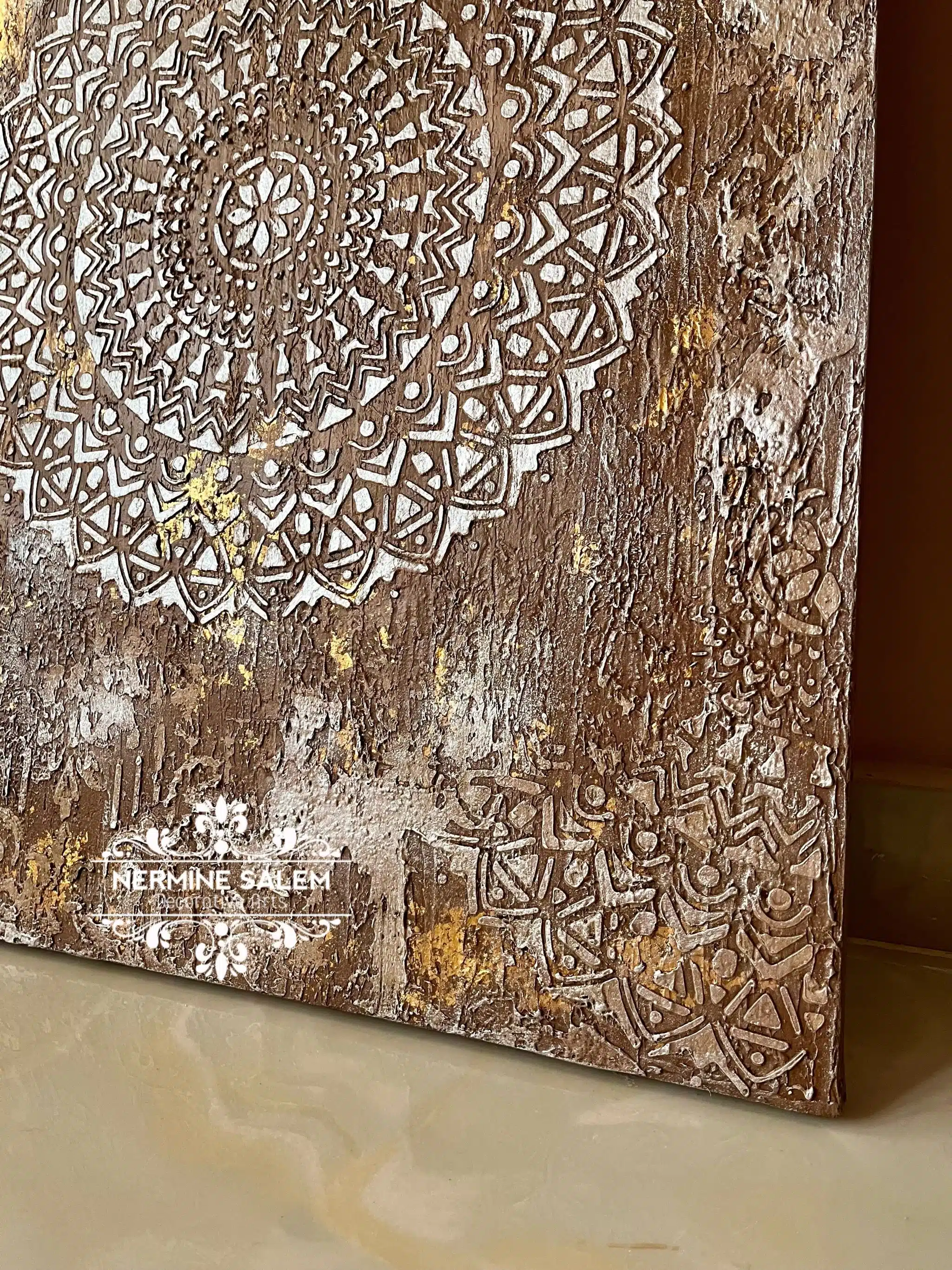 acrylic paste with gold leaves on canvas