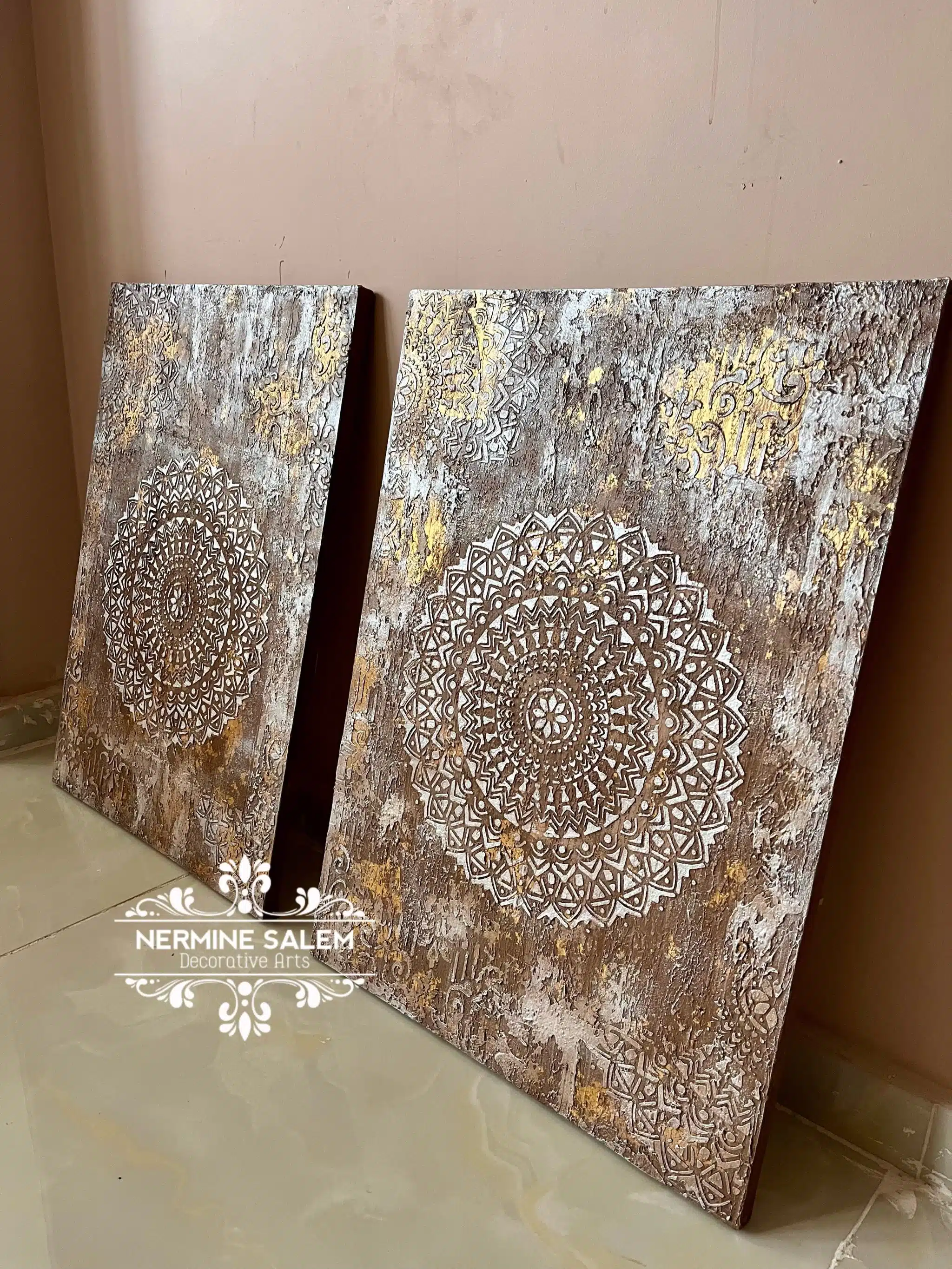 2 pieces 50*70 cm acrylic paste with gold leaves on canvas