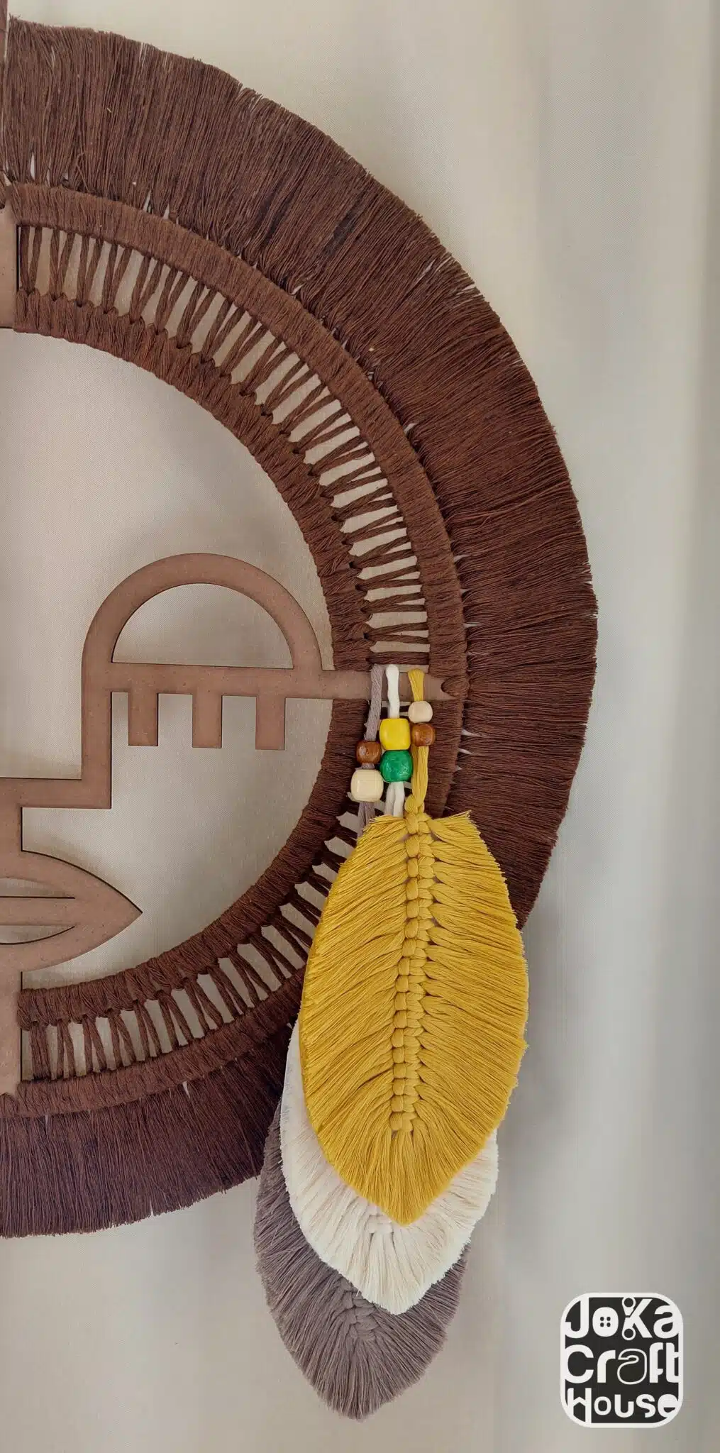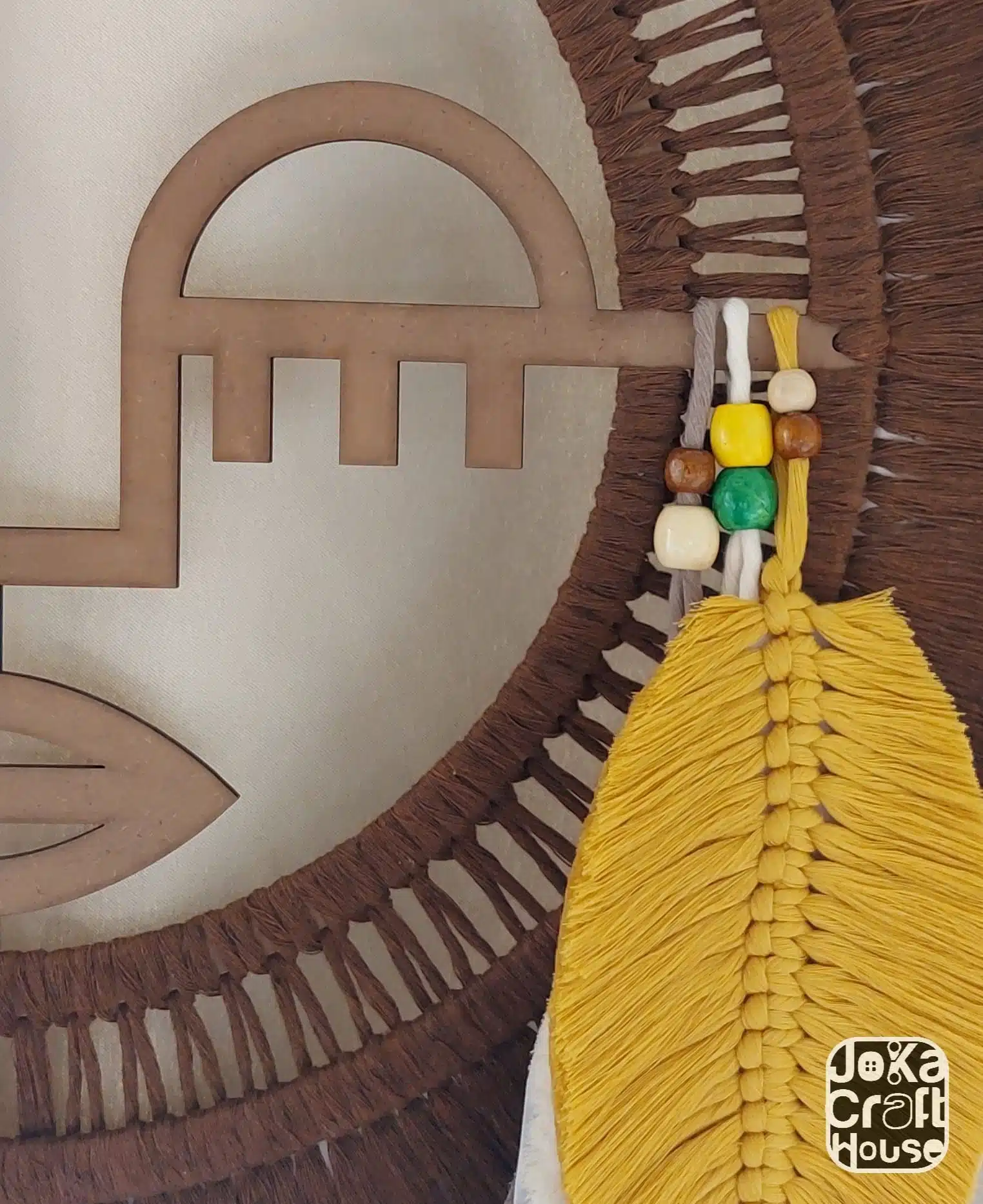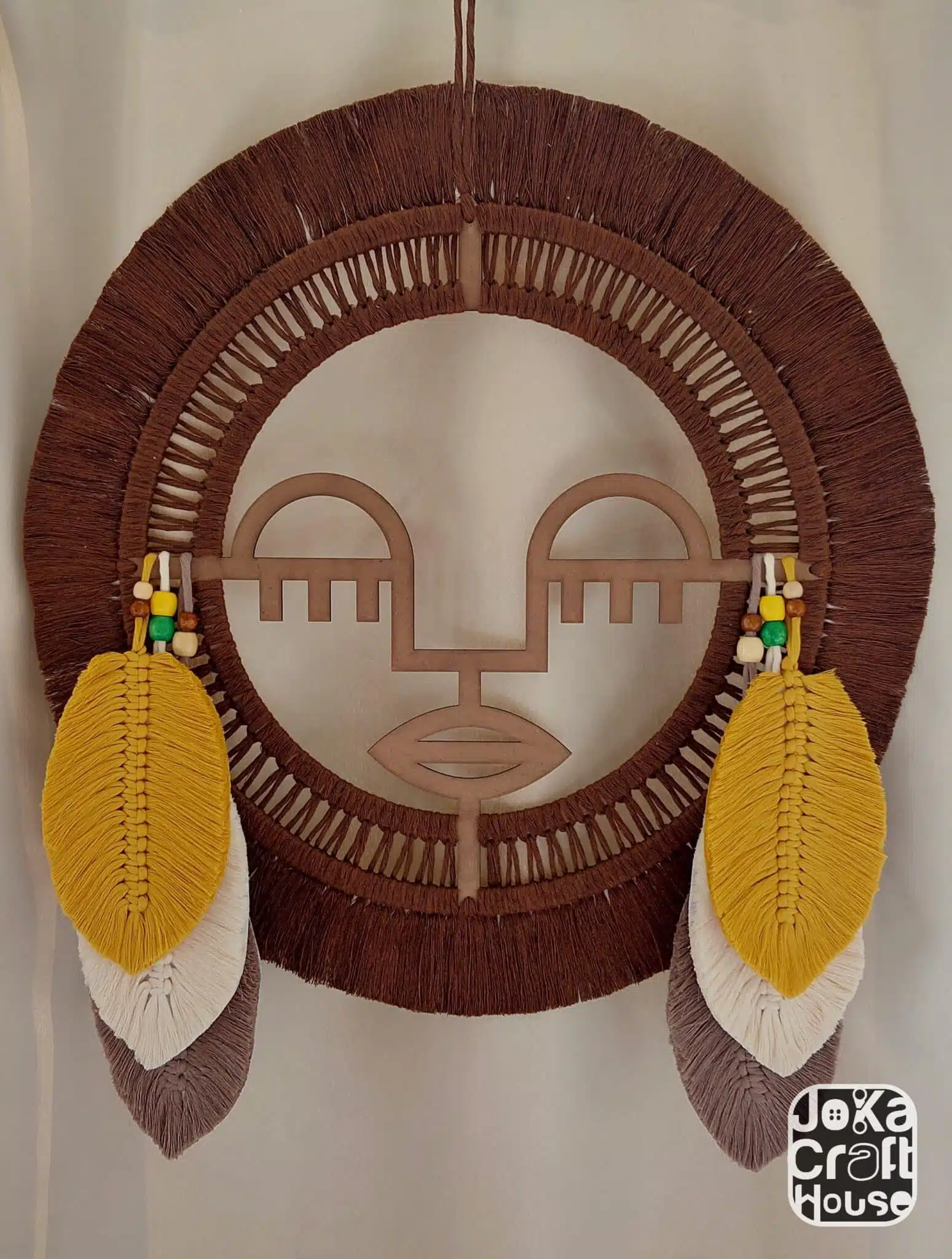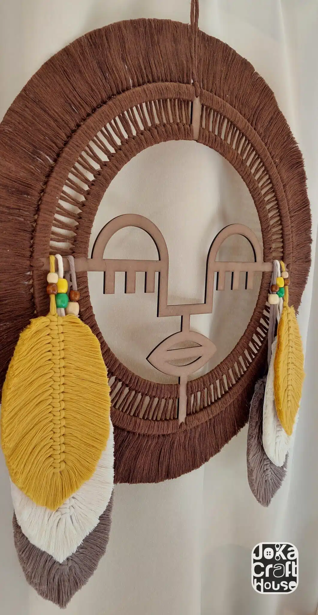 معلقة حيط وش إفريقي قطرها الإجمالى ٦٠ سم خشب mdf الخيط مكرمية تركى طول ورقة الشجر الواحدة حوالى ٢٢ سم الوش مفرغ بتاخد أسبوع شغل