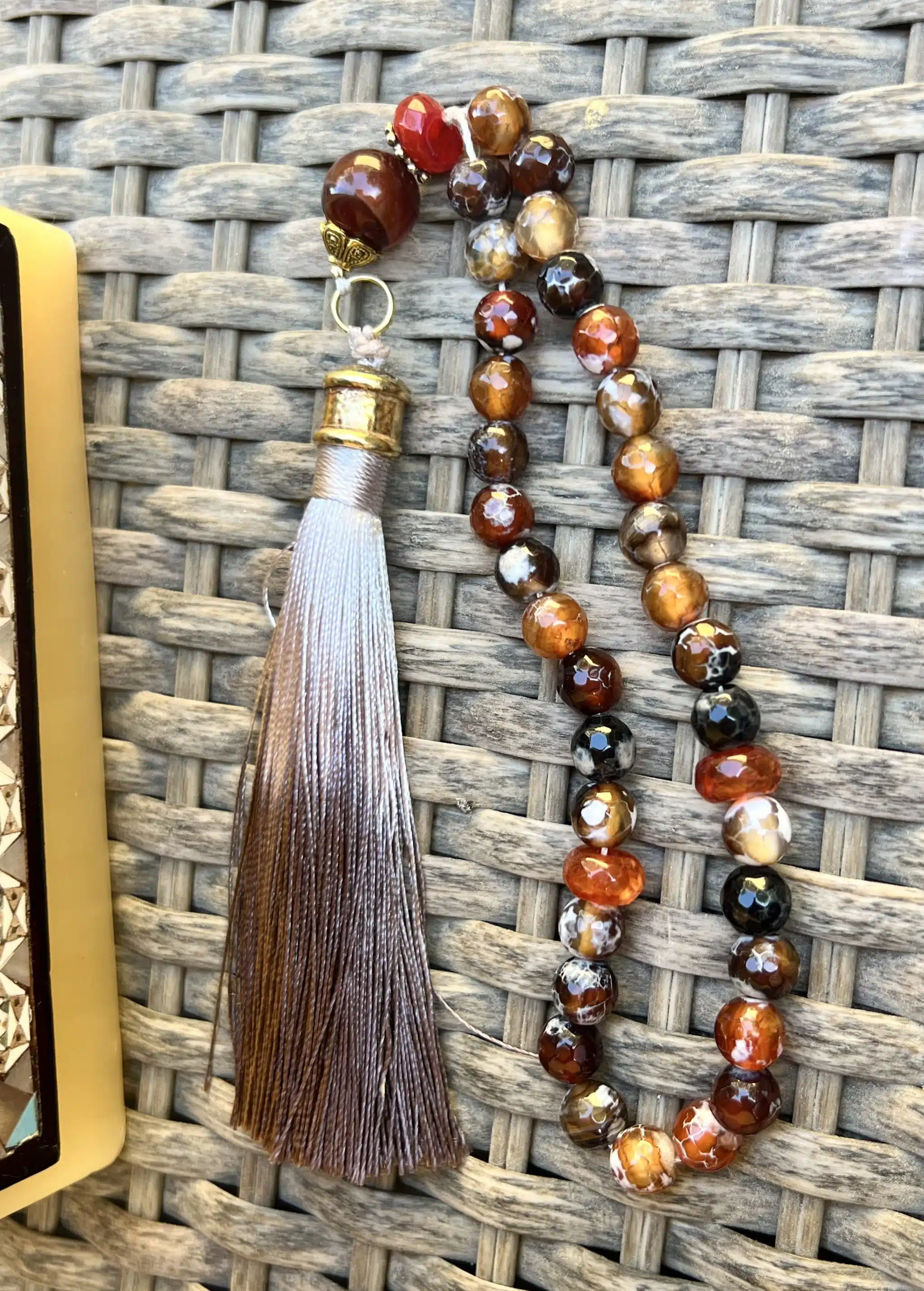 Gorgeous 33 Agate beads Sebha, prayer beads, long tassel, great gift for Ramadan