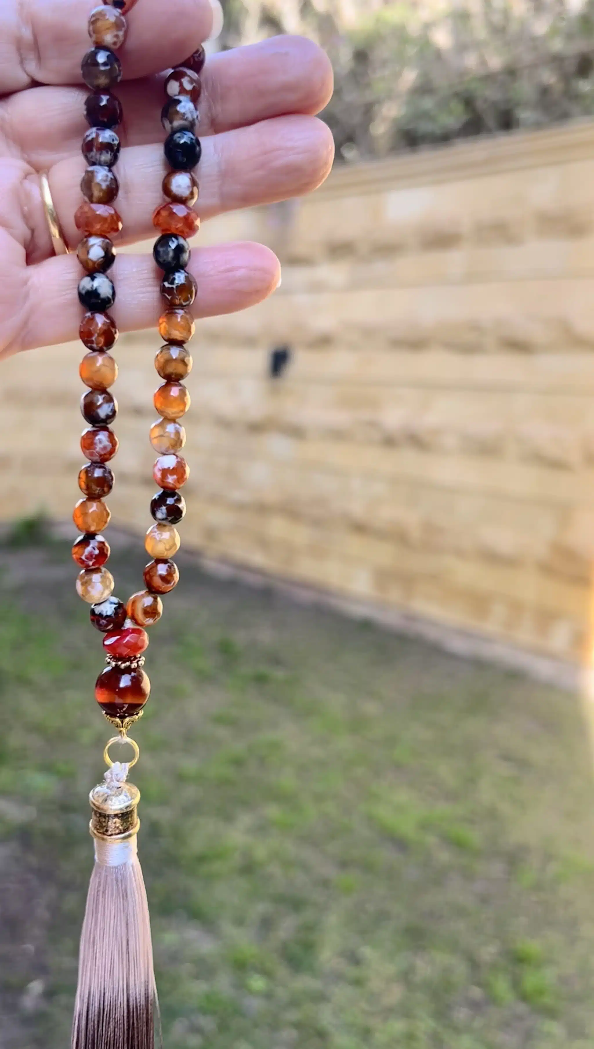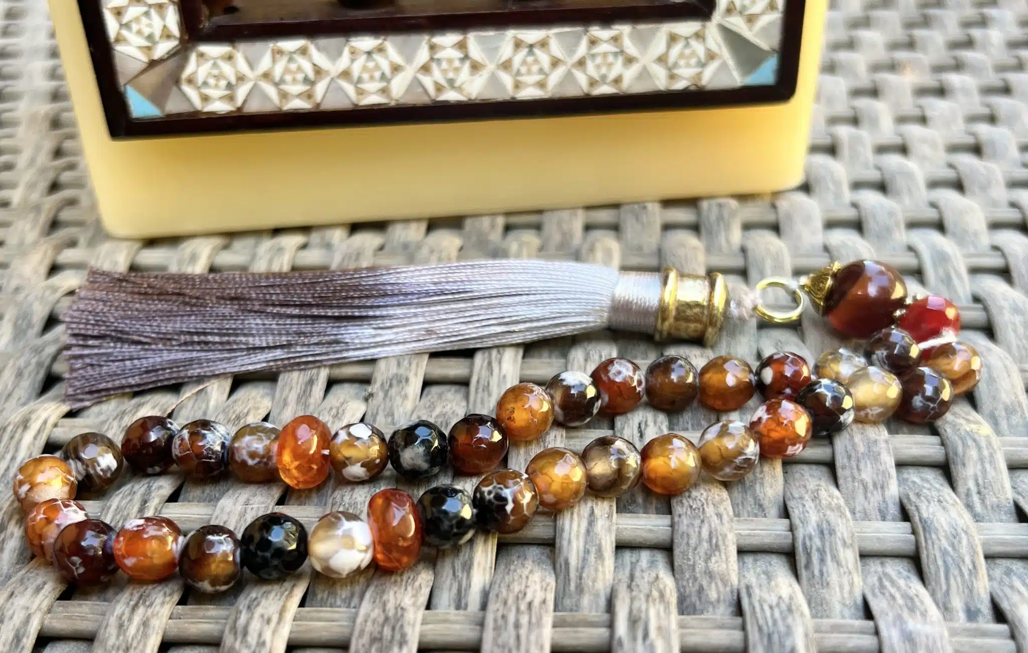 Agate brown, 33 beads Sebha, prayer beads with long tassel