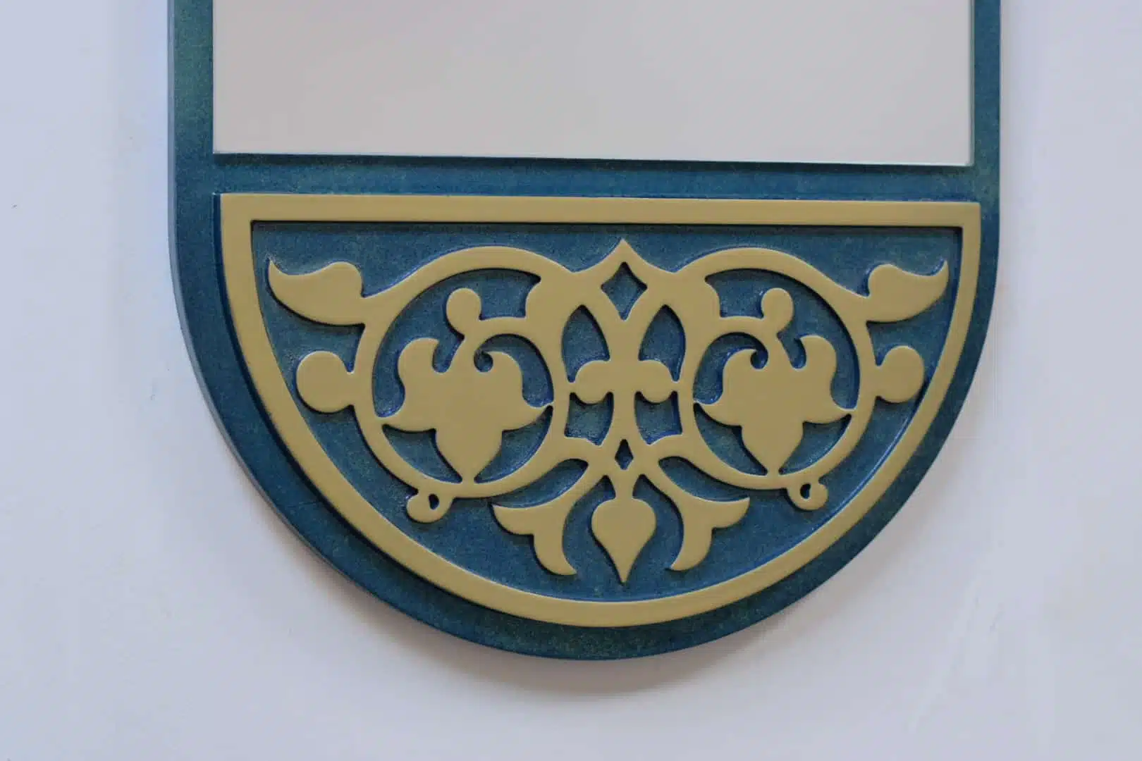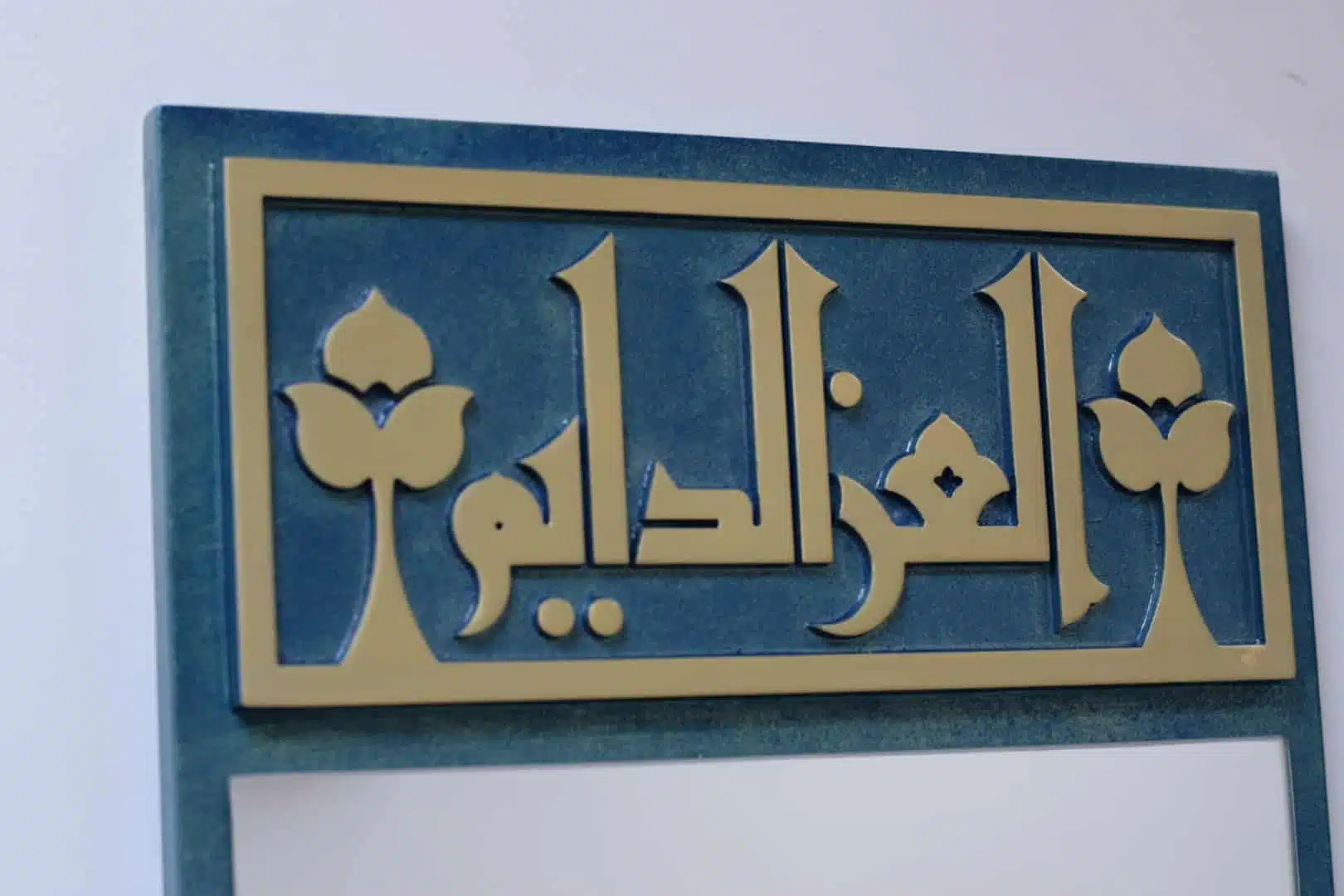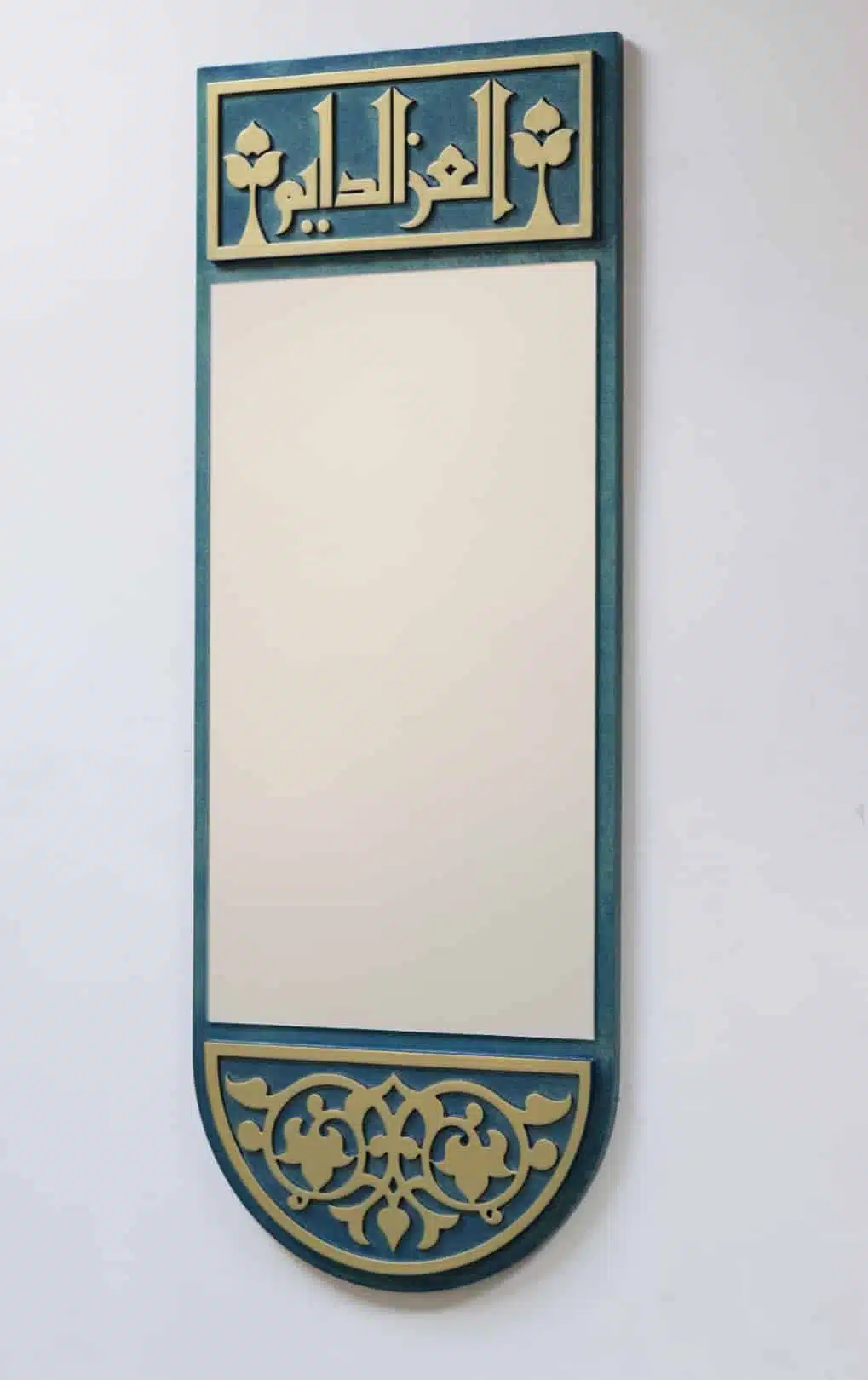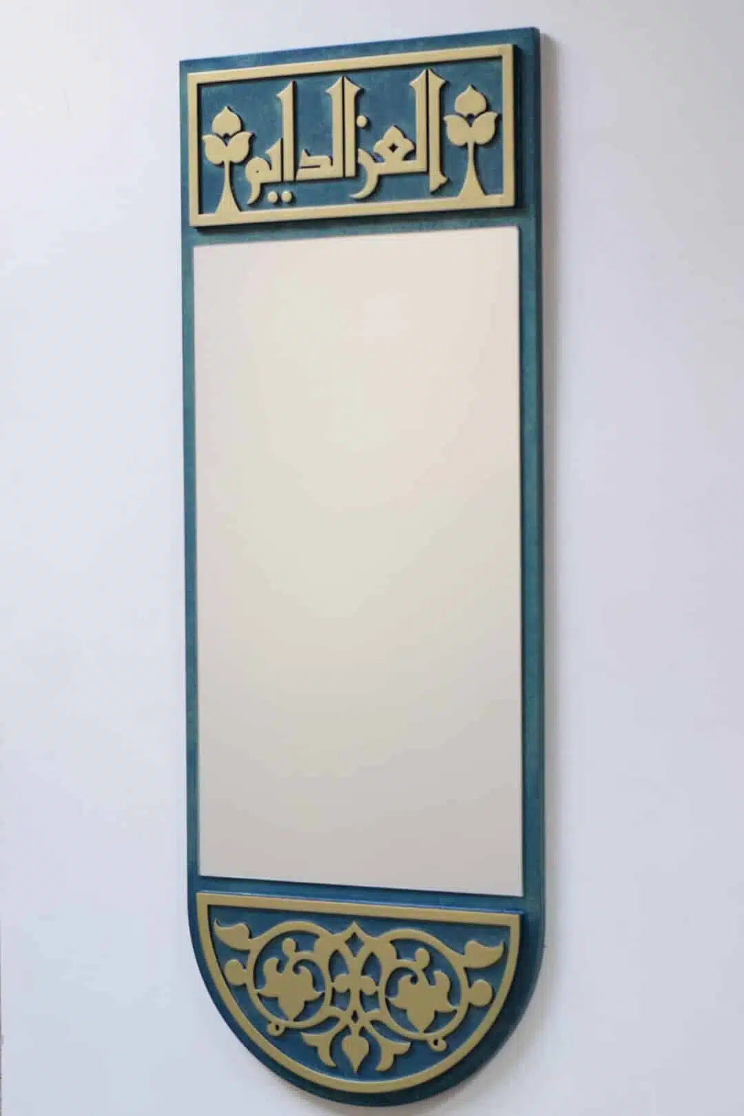 AL Ezz AL Daym was one of the most prayers (Dua’) they repeatedly used in their daily life. It means , “May Allah Grant you wellness forever”. I’ve used this Dua’ with this beautiful motif which came from the School/Mousque and Mausoleum of Emir Sarghitmish in Cairo in this mirror frame.