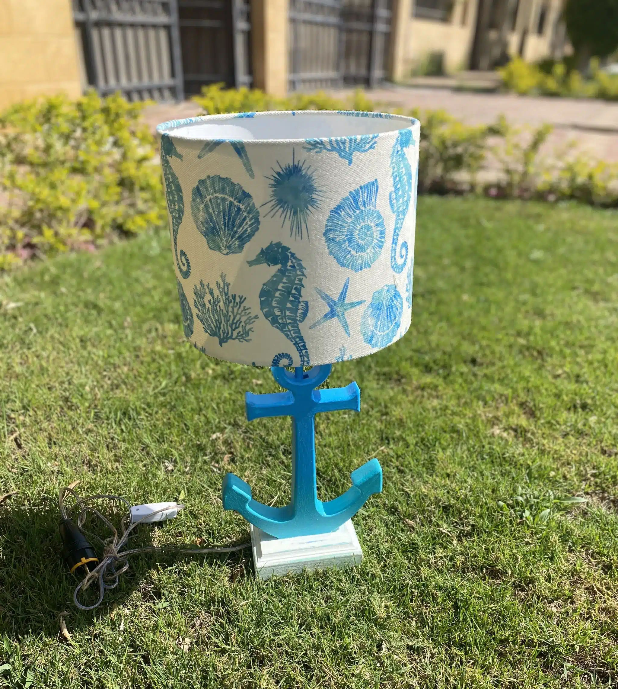 Wooden anchor side lamp with customized chapeau
