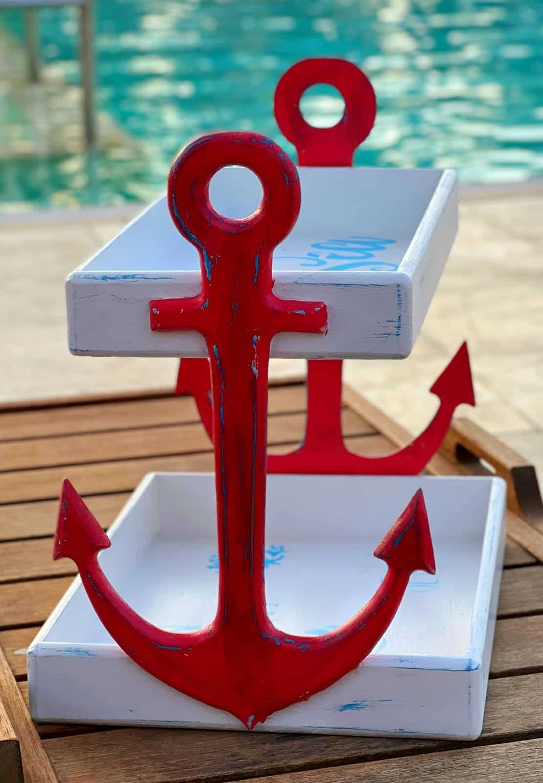 Wooden 2 tiers summer anchor tray