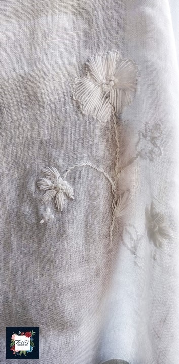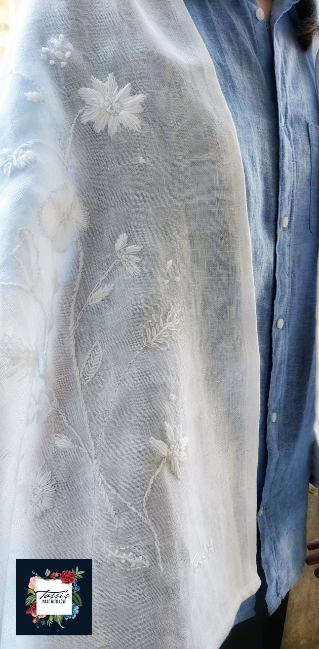 Material: Pure Linen Shawl, hand embroidered with cotton threads.