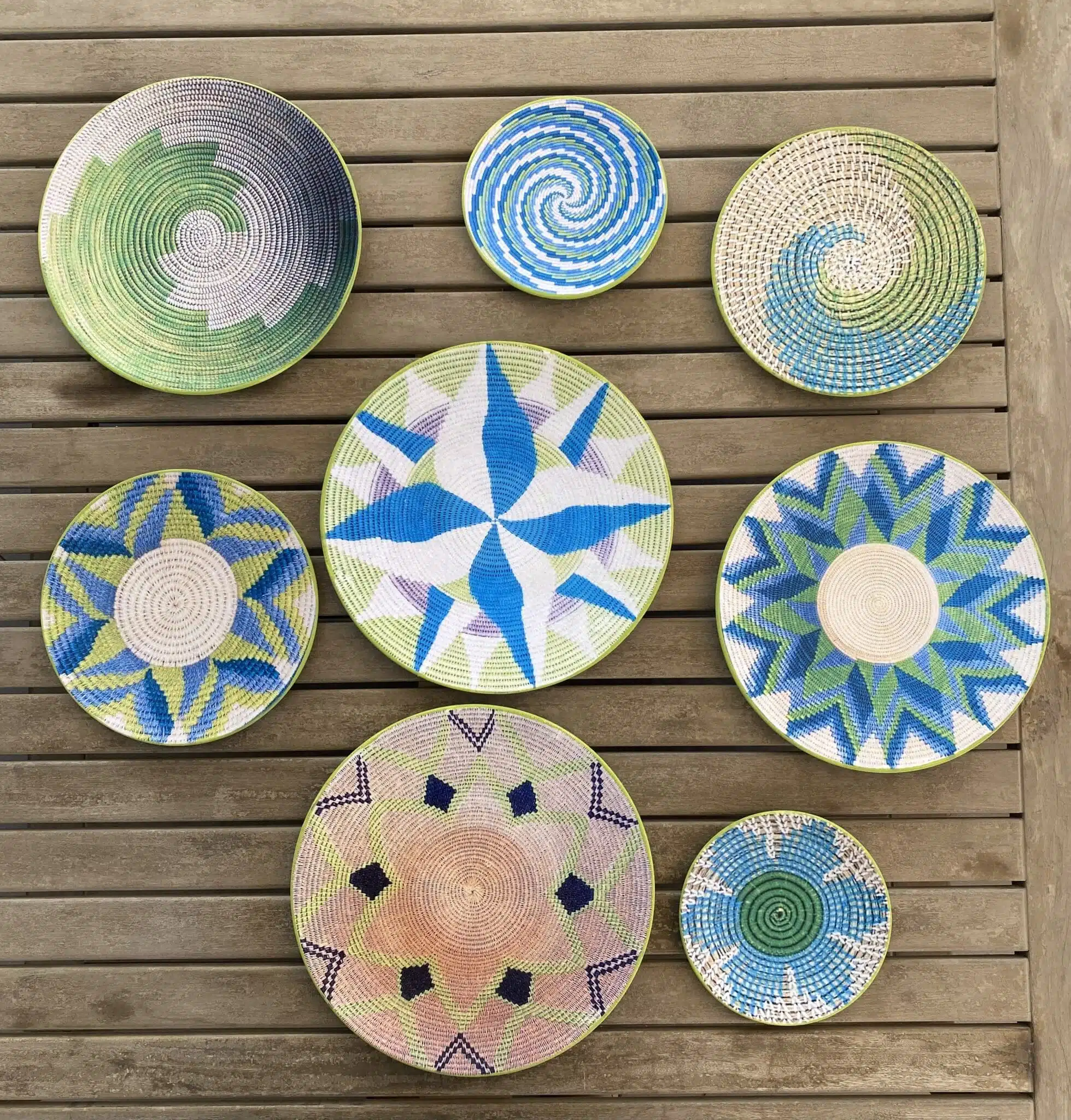Porcelaine Decoupaged Wall Plates Boho Style in Apple Green