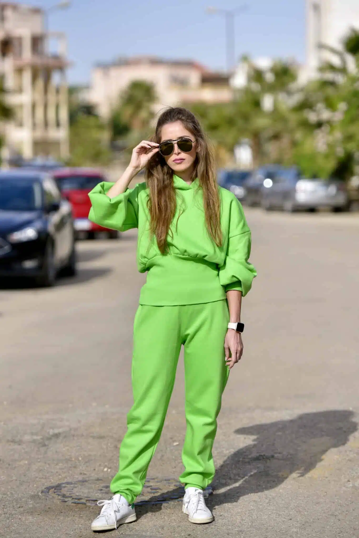 Apple Green ribbed waist hoodie and cuffed pants