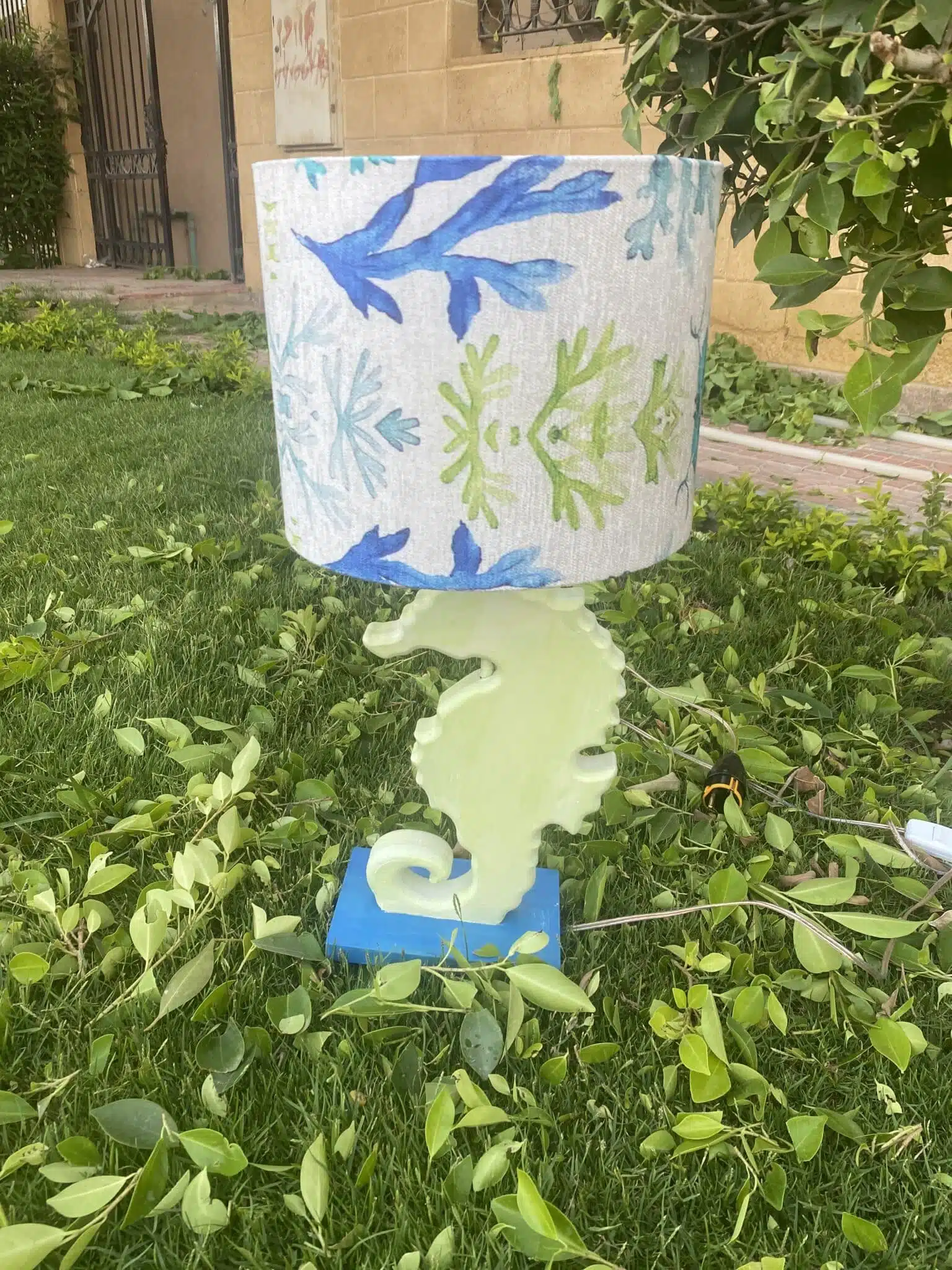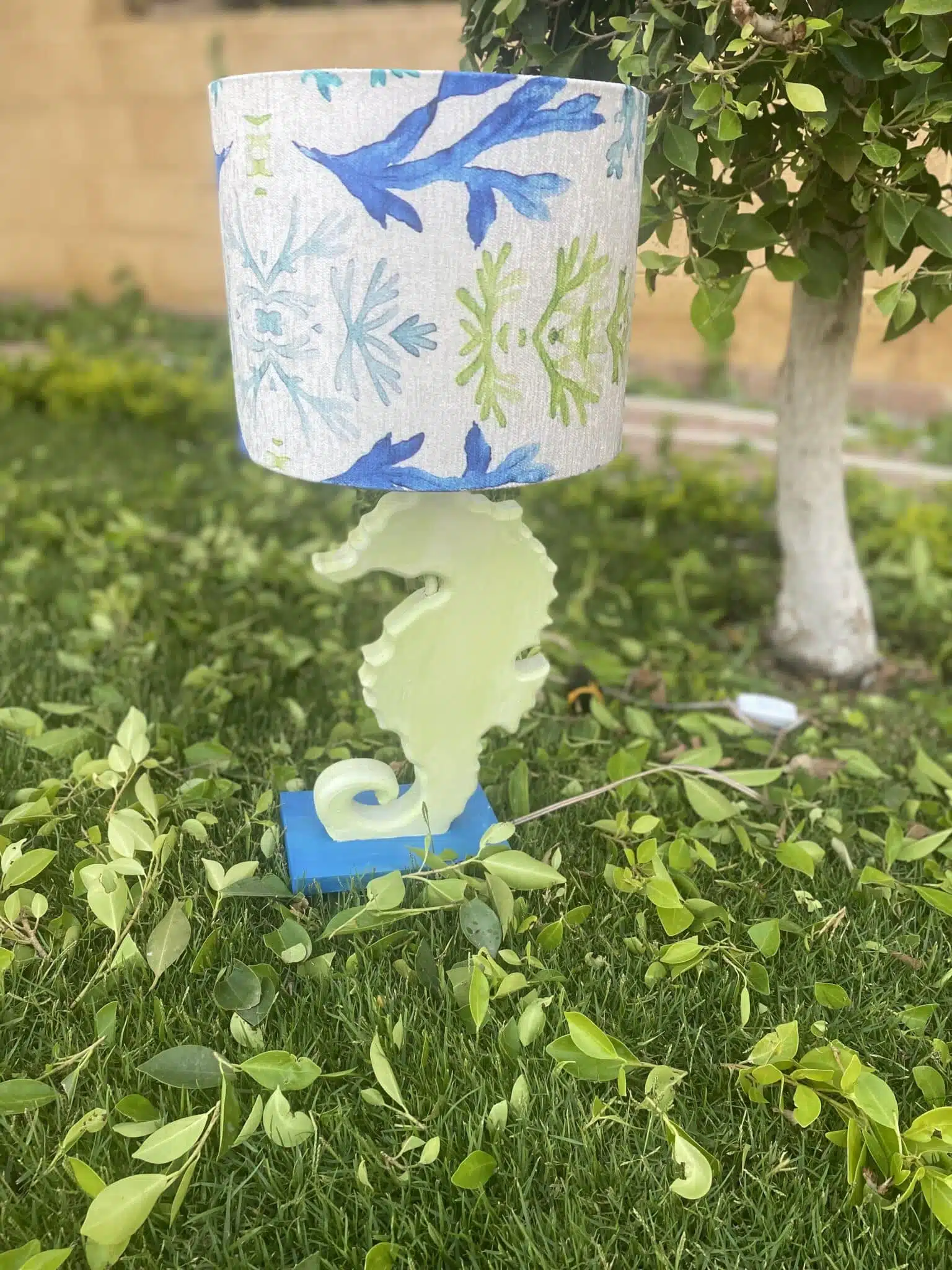 Wooden Sea Horse Side Lamp Apple Green x Blue