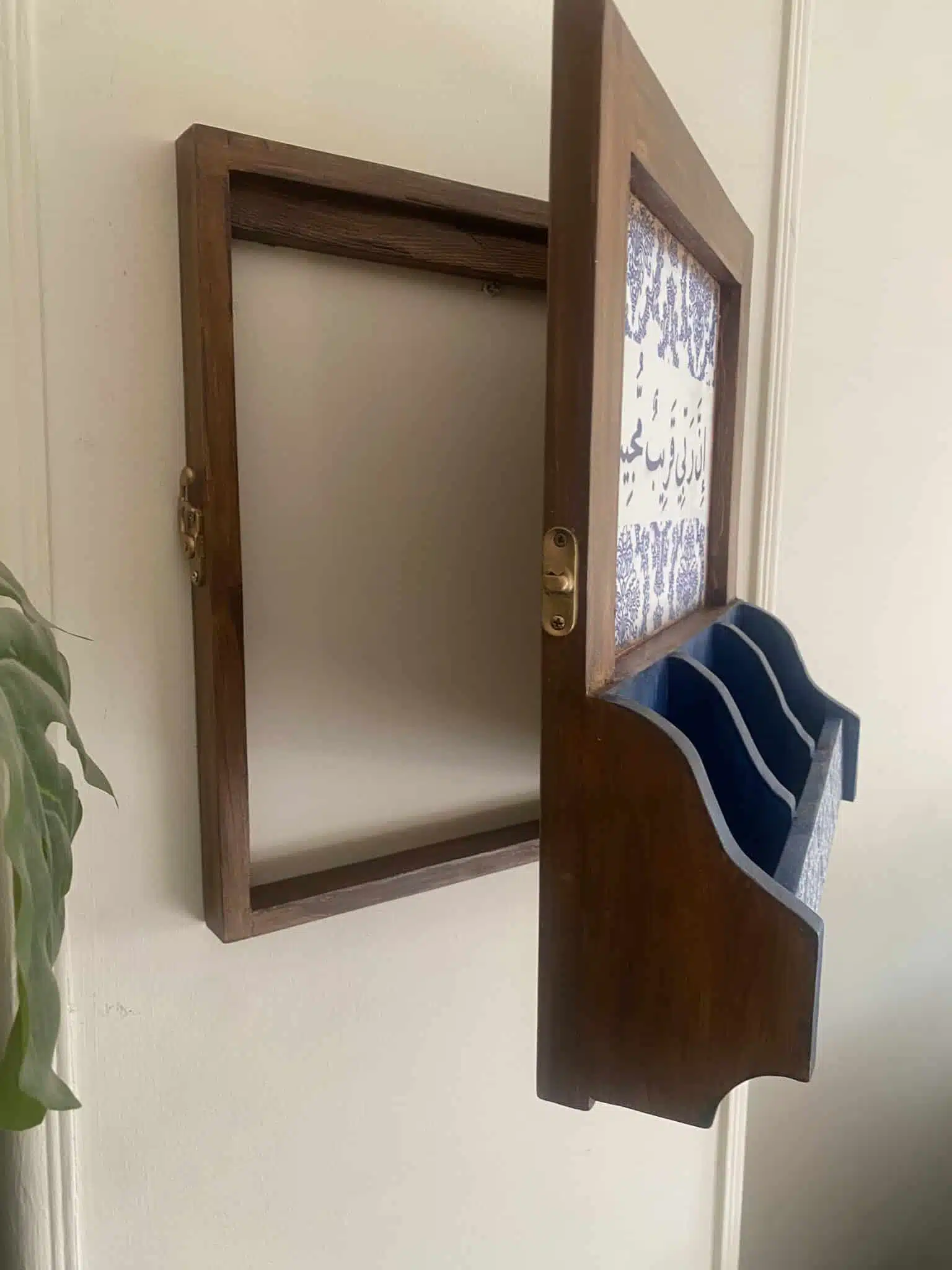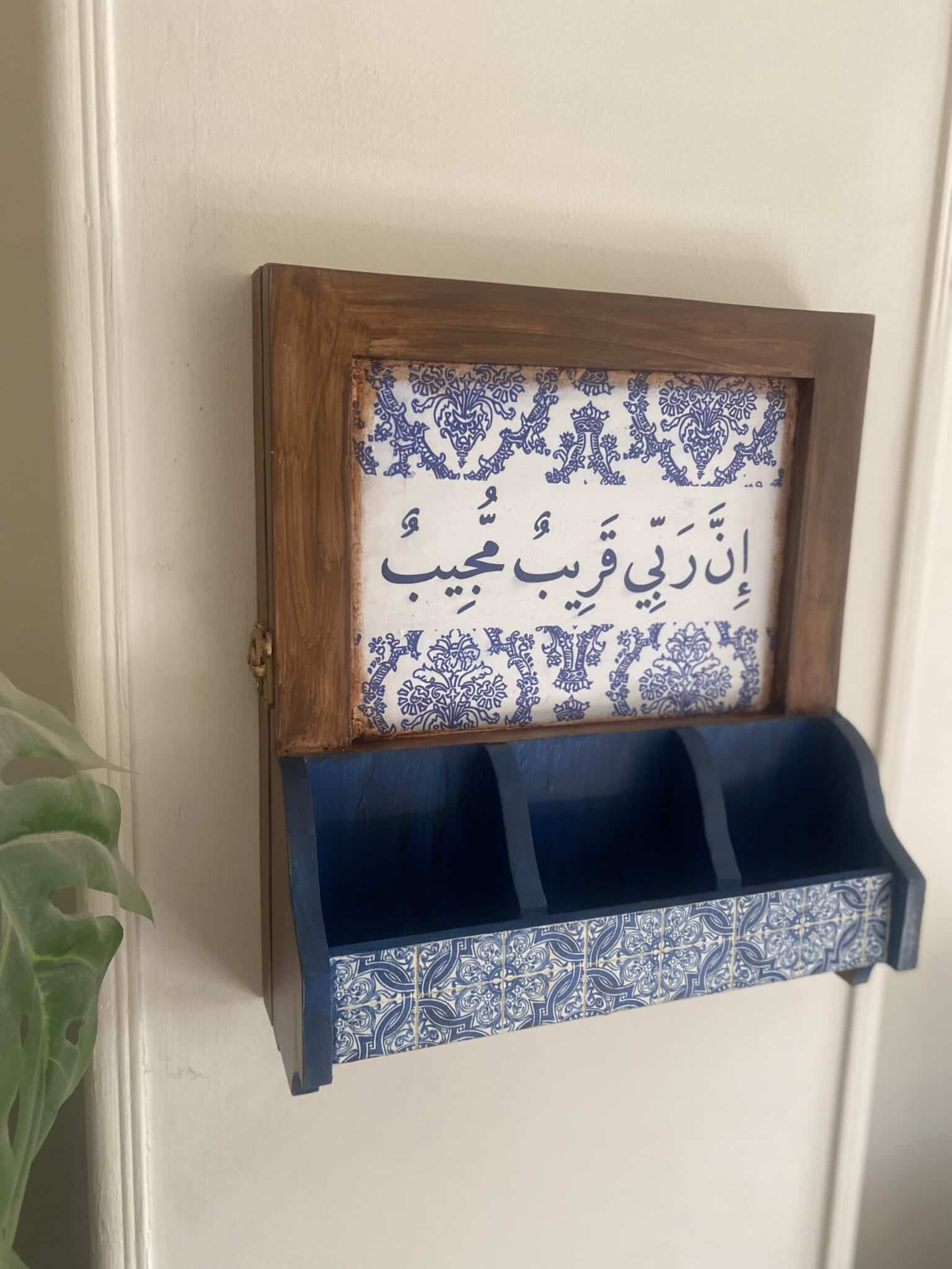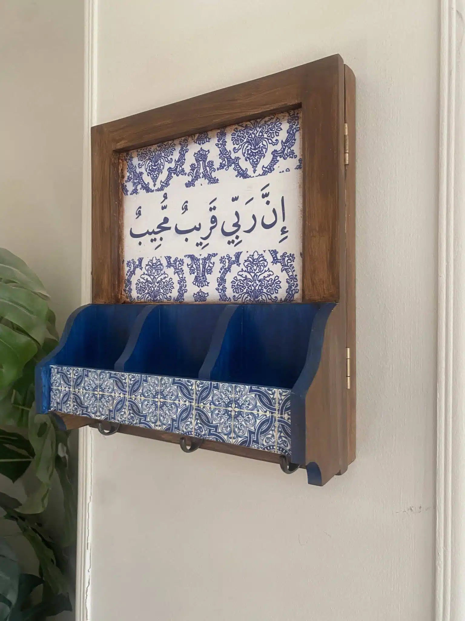 Electricity box cover in arabic design, customizable according to size with pockets and hooks for keys